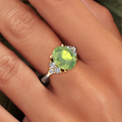 Dieser Verlobungsring aus 14 Karat Weißgold heißt Aleida OVL 1. Sind Sie auf der Suche nach einem klassische, Weißgold Verlobungsring mit Peridot 9x7 mm, den Sie nach Ihren Wünschen gestalten können? Dieser klassische Verlobungsring ist mit Peridot besetzt, der sorgfältig für diesen speziellen Ring ausgewählt wurde, um den besten Effekt zu erzielen. Unser erfahrener Juwelier kreiert Ihren Ring in unserem eigenen Studio eine Etage tiefer, wo der Peridot mit großer Sorgfalt eingefasst wird. Der Ring wird dann bearbeitet und poliert, bis er perfekt ist. Nichts als das Beste für die Liebe Ihres Lebens! Das Besondere an unserem Konfigurator ist dass Sie selbst einem Schmuckstück zusammenstellen können zu einem eigenen persönlichen Schmuckstück. Jedes Schmuckstück ist um Ihrem Finger Glanz zu verleihen. Jeder Ring wird von unseren Goldschmieden liebevoll von Hand gefertigt.. Haben Sie ein bestimmtes Budget? Sie können uns gerne kontaktieren, damit wir Ihre Optionen besprechen können. Wir bieten unsere Verlobungsringe zum garantiert besten Preis, denn wir fertigen sie auf Bestellung. Solche Preise finden Sie nirgendwo anders!Unser Team fügt unserer Online-Kollektion täglich neue Designs hinzu. Unsere Designer und Goldschmiede arbeiten zusammen, um das beste Design zu kreieren. Wir bemühen uns, eine vielfältige Kollektion von Schmuckstücken anzubieten. Vielleicht haben Sie ein bestimmtes Design im Sinn. Eines, dass Sie irgendwo gesehen haben. Gerne geben wir Ihnen eine kostenlose Beratung. Wir machen Ihnen ein Angebot, basierend auf einem fairen Preis/Leistungsverhältnis, das Sie verblüffen wird.Um es einfacher zu machen, bieten wir eine kostenlose 30-tägige Rücksendung.