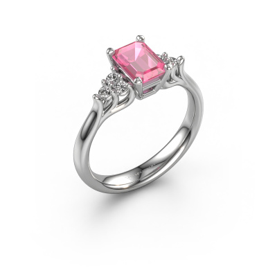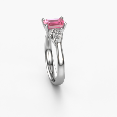 Der oben gezeigte Verlobungsring wird Monika EME genannt. Wir nennen das einen Solitär-Ring, denn er hat einen einzelnen Edelstein. Es ist ein 14 Karat Weißgold Verlobungsring, mit 7x5 mm smaragd schliff Pink Saphir. Dieser außergewöhnliche, klassische Weißgold Solitär-Verlobungsring mit einem schönen, smaragd schliff Pink Saphir soll Ihrem Antrag ein Funkeln geben. Die offenen Krappen ermöglichen, dass Licht aus mehr Winkeln auf den Edelstein trifft. Wussten Sie, dass ein Pink Saphir für ewige Liebe und Treue steht? Das macht ihn zum perfekten Mittelstück. Unsere Goldschmiede positioniert den Edelstein Ihrer Wahl sorgfältig oben auf dem Ring. Dadurch sticht er hervor. Jedes Schmuckstück wird von unseren Meister-Goldschmieden in unserem eigenen Studio für Sie gefertigt.Mit unserer modernen Technik können wir Schmuckstücke von höchster Qualität mit größter Sorgfalt für Sie entwerfen und anpassen. Unsere Verlobungsringe sind immer um 30 Prozent günstiger als bei anderen Juwelieren. Wir fertigen Verlobungsringe auf Bestellung, also müssen wir keine großen Lager unterhalten. Wenn Sie ein bestimmtes Budget haben, beraten wir Sie gerne entsprechend.Unser Team fügt unserer Online-Kollektion täglich neue Designs hinzu. Unsere Designer und Goldschmiede arbeiten zusammen, um das beste Design zu kreieren. Wir bemühen uns, eine vielfältige Kollektion von Schmuckstücken anzubieten. Vielleicht haben Sie ein bestimmtes Design im Sinn. Eines, dass Sie irgendwo gesehen haben. Gerne geben wir Ihnen eine kostenlose Beratung. Wir machen Ihnen ein Angebot, basierend auf einem fairen Preis/Leistungsverhältnis, das Sie verblüffen wird.Um es einfacher zu machen, bieten wir eine kostenlose 30-tägige Rücksendung.