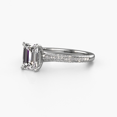 Der oben gezeigte Ring wird Elenore eme genannt. Es ist ein Pavé Solitär Ring, da er einen zentralen Edelstein und ein Band mit Pavé-Fassung hat. Dieser Platin ring ist mit einem 1.15 crt smaragd schliff Lab-grown Diamant-Mittelstein besetzt und das Band hat eine Pavé-Fassung mit Lab grown Diamant. Jedes Schmuckstück wird nur für Sie persönlich hergestellt, mit Liebe zum Detail und Design.Dieser exklusive Platin Pavé Solitär Verlobungsring mit Pavé-Fassung hat einen exquisiten, smaragd schliff Lab-grown Diamant als Mittelstein. Um den zentralen Stein noch mehr zu betonen, hat das Band eine Pavé-Fassung mit weiteren Lab grown Diamant. Durch die offenen Krappen kann das Licht aus mehreren Winkeln auf den Lab-grown Diamant treffen und der Lab-grown Diamant-Ring funkelt noch mehr. Das obere Foto zeigt die leidenschaftlich handgefertigten Details des Rings. Die hohe Positionierung der Mittelstein ist ein echter Blickfang. Der perfekte Verlobungsring für das Kronjuwel Ihres Lebens!Haben Sie ein bestimmtes Budget? Sie können uns gerne kontaktieren, damit wir Ihre Optionen besprechen können. Wir bieten unsere Verlobungsringe zum garantiert besten Preis, denn wir fertigen sie auf Bestellung. Solche Preise finden Sie nirgendwo anders!Haben Sie irgendwo einen bestimmten Verlobungsring gefunden, den Sie Ihrem Liebsten schenken möchten? Sie können uns gerne sagen, was Sie wollen und wir werden Ihr Design in einen Einzigartigen exklusive Verlobungsring verwandeln. Sie können die Entwicklungen Ihres Ringdesigns verfolgen, da wir 3D-Zeichnungen verwenden. Das gibt Ihnen eine realistische Vorschau, wie Ihr Design aussehen wird. Sie können auch einen Dummy vorbestellen. Ein Dummy ist ein Kunststoffring, der nach Ihrem Ringdesign gestaltet werden kann. Sie können ihn anprobieren und prüfen, ob seine Breite und Größe für Sie geeignet sind. Wir senden Ihnen gerne ein unverbindliches Angebot zu einem fairen Preis/Leistungsverhältnis. Sie werden in Anbetracht der Qualität des Rings und der Edelsteine überrascht sein.Um es einfacher zu machen, bieten wir eine kostenlose 30-tägige Rücksendung.