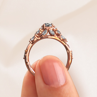 Der oben gezeigte Ring wird Samantha RND genannt. Es ist ein Pavé Solitär Ring, da er einen zentralen Edelstein und ein Band mit Pavé-Fassung hat. Dieser 14 Karat Roségold ring ist mit einem 0.50 crt rund Lab-grown Diamant-Mittelstein besetzt und das Band hat eine Pavé-Fassung mit Diamanten. Jedes Schmuckstück wird hergestellt mit Leidenschaft und Liebe, von einem unserer Meister-Goldschmiede.Dieser moderne Roségold Pavé Solitär Verlobungsring mit Pavé-Fassung hat einen exquisiten, rund Lab-grown Diamant als Mittelstein. Um den zentralen Stein noch mehr zu betonen, hat das Band eine Pavé-Fassung mit weiteren Diamanten. Durch die offenen Krappen kann das Licht aus mehreren Winkeln auf den Lab-grown Diamant treffen und der Lab-grown Diamant-Ring funkelt noch mehr. Das obere Foto zeigt die leidenschaftlich handgefertigten Details des Rings. Die hohe Positionierung der Mittelstein ist ein echter Blickfang. Der perfekte Verlobungsring für das Kronjuwel Ihres Lebens!Durch die Kombination modernster Technik mit uralter Handwerkskunst können wir alle Verlobungsringe in unserem eigenen Studio anfertigen. Jedes Schmuckstück wird auf Anfrage gefertigt. Das ist vorteilhaft, weil wir Ihnen dadurch einen Preis anbieten können, den Sie nirgendwo anders finden.Unsere Designer und Goldschmiede arbeiten jeden Tag zusammen und versuchen, neue Schmuckstücke zu kreieren. Vielleicht haben Sie irgendwo einen schönen, moderne Verlobungsring gefunden, nach dem Ihr einzigartiger Ring gestaltet werden kann. Setzen Sie sich mit uns in Verbindung. Wir machen Ihnen ein Angebot, basierend auf einem fairen Preis/Leistungsverhältnis, das Sie begeistern wird.Um es einfacher zu machen, bieten wir eine kostenlose 30-tägige Rücksendung.