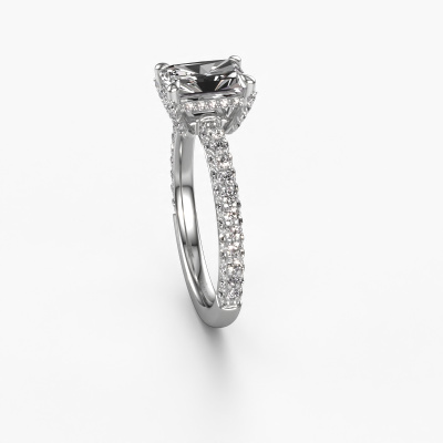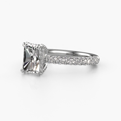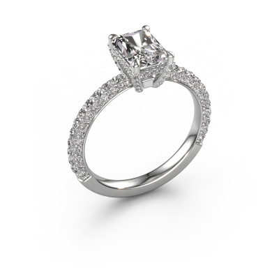 Der oben gezeigte Weißgold Verlobungsring wird Saskia rad 2 genannt. Es ist ein Pavé Solitär Ring, da er einen zentralen Edelstein und ein Band mit Pavé-Fassung hat. Der exklusive Pavé Solitär Verlobungsring ist in der Kombination 14 Karat Weißgold mit Weißgold und ist mit einem radiant 1.50 crt Lab-grown Diamant-Mittelstein besetzt und das Band hat eine Pavé-Fassung mit Lab grown Diamant. Jedes Schmuckstück wird nur für Sie persönlich hergestellt, mit Liebe zum Detail und Design. Um den zentralen Stein noch mehr zu betonen, hat das Band eine Pavé-Fassung mit weiteren Lab-grown Diamant. Durch die offenen Krappen kann das Licht aus mehreren Winkeln auf den Lab-grown Diamant treffen und der Lab-grown Diamant-Ring funkelt noch mehr. Das obere Foto zeigt die leidenschaftlich handgefertigten Details des Rings. Die hohe Positionierung der Mittelstein ist ein echter Blickfang. Der perfekte Verlobungsring für das Kronjuwel Ihres Lebens!Da wir unsere eigenen Ringe entwerfen und liefern, können wir Ihnen einen Verlobungsring zu einem Preis anbieten, den Sie nirgendwo anders finden. Ein Ring wird auf Bestellung angefertigt, wodurch kein überschüssiges Material anfällt. So können wir Ihnen ein gutes Angebot zum besten Preis machen. Wir verstehen, dass es sich riskant anfühlt, Ihren Verlobungsring online zu kaufen. Jedoch helfen wir Ihnen gerne beim Designprozess unter Berücksichtigung Ihres Budgets.Unser Team fügt unserer Online-Kollektion täglich neue Designs hinzu. Unsere Designer und Goldschmiede arbeiten zusammen, um das beste Design zu kreieren. Wir bemühen uns, eine vielfältige Kollektion von Schmuckstücken anzubieten. Vielleicht haben Sie ein bestimmtes Design im Sinn. Eines, dass Sie irgendwo gesehen haben. Gerne geben wir Ihnen eine kostenlose Beratung. Wir machen Ihnen ein Angebot, basierend auf einem fairen Preis/Leistungsverhältnis, das Sie verblüffen wird.Um es einfacher zu machen, bieten wir eine kostenlose 30-tägige Rücksendung.