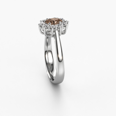 Der oben gezeigte Ring, mit dem Namen Leesa 1, nennen wir einen Lady Diana Verlobungsring. Der Cluster Ring trägt einem zentralen Edelstein, umgeben von kleineren Steinen. Diese Version in 14 Karat Weißgold hat einen oval Braun Diamant von oval als Mittelstein, umschlossen von kleineren Diamanten. Was diesen klassische Weißgold Lady Diana Ring besonders macht, sind die kleinen Edelsteine rund um den zentralen Braun Diamant, die wie eine schöne Blume geformt sind. Der umgebende Steinkranz umrahmt den Mittelstein so, dass er größer erscheint. Diese Art von Verlobungsring wird auch Blumen- oder Rosettenring genannt. Es ist sehr wichtig, dass die kleineren Braune Diamanten identisch positioniert sind, so dass es kein Spiel im Licht, sondern eine perfekte Einheit ergibt. Unsere erfahrenen Juweliere erledigen diese Arbeit. Jeder einzelne Stein wird sorgfältig von Hand gesetzt. Während der Herstellung wird der Lichteinfall ständig überwacht, um sicherzustellen, dass der spezielle Lady Diana-Effekt noch sichtbar ist. Am Ende bekommen Sie den perfekten Verlobungsring mit einem strahlenden Braun Diamant Edelstein Herzstück. Sie können sich die Wirkung eines solchen Ringes vorstellen, wenn Sie ihn an ihrem besonderen Tag für die Liebe Ihres Lebens zum Leuchten bringen. Jedes Schmuckstück lässt Ihren Finger erstrahlen. Ihr Ring ist mit Liebe von unseren Goldschmieden handgefertigt.Nachdem Sie Ihre Bestellung aufgegeben haben, beginnen unsere Goldschmiede mit dem kreativen Prozess der Herstellung Ihres Leesa 1 Verlobungsring. Wir haben keine Lager. Das ist vorteilhaft, da diese Kosten nicht an Sie weitergegeben werden. Daher sind wir in der Lage, Schmuck zu außergewöhnlich niedrigen Preisen anzubieten.Haben Sie irgendwo einen bestimmten Verlobungsring gefunden, den Sie Ihrem Liebsten schenken möchten? Sie können uns gerne sagen, was Sie wollen und wir werden Ihr Design in einen Einzigartigen klassische Verlobungsring verwandeln. Sie können die Entwicklungen Ihres Ringdesigns verfolgen, da wir 3D-Zeichnungen verwenden. Das gibt Ihnen eine realistische Vorschau, wie Ihr Design aussehen wird. Sie können auch einen Dummy vorbestellen. Ein Dummy ist ein Kunststoffring, der nach Ihrem Ringdesign gestaltet werden kann. Sie können ihn anprobieren und prüfen, ob seine Breite und Größe für Sie geeignet sind. Wir senden Ihnen gerne ein unverbindliches Angebot zu einem fairen Preis/Leistungsverhältnis. Sie werden in Anbetracht der Qualität des Rings und der Edelsteine überrascht sein.Um es einfacher zu machen, bieten wir eine kostenlose 30-tägige Rücksendung.