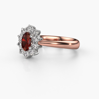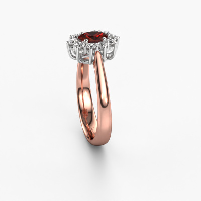 Der oben gezeigte Ring, mit dem Namen Leesa 1, nennen wir einen Lady Diana Verlobungsring. Der Cluster Ring trägt einem zentralen Edelstein, umgeben von kleineren Steinen. Diese Version in 14 Karat Roségold hat einen oval Granat von oval als Mittelstein, umschlossen von kleineren Diamanten. Was diesen klassische Roségold Lady Diana Ring besonders macht, sind die kleinen Edelsteine rund um den zentralen Granat, die wie eine schöne Blume geformt sind. Der umgebende Steinkranz umrahmt den Mittelstein so, dass er größer erscheint. Diese Art von Verlobungsring wird auch Blumen- oder Rosettenring genannt. Es ist sehr wichtig, dass die kleineren Granat identisch positioniert sind, so dass es kein Spiel im Licht, sondern eine perfekte Einheit ergibt. Unsere erfahrenen Juweliere erledigen diese Arbeit. Jeder einzelne Stein wird sorgfältig von Hand gesetzt. Während der Herstellung wird der Lichteinfall ständig überwacht, um sicherzustellen, dass der spezielle Lady Diana-Effekt noch sichtbar ist. Am Ende bekommen Sie den perfekten Verlobungsring mit einem strahlenden Granat Edelstein Herzstück. Sie können sich die Wirkung eines solchen Ringes vorstellen, wenn Sie ihn an ihrem besonderen Tag für die Liebe Ihres Lebens zum Leuchten bringen. Jedes Schmuckstück lässt Ihren Finger erstrahlen. Ihr Ring ist mit Liebe von unseren Goldschmieden handgefertigt.Nachdem Sie Ihre Bestellung aufgegeben haben, beginnen unsere Goldschmiede mit dem kreativen Prozess der Herstellung Ihres Leesa 1 Verlobungsring. Wir haben keine Lager. Das ist vorteilhaft, da diese Kosten nicht an Sie weitergegeben werden. Daher sind wir in der Lage, Schmuck zu außergewöhnlich niedrigen Preisen anzubieten.Haben Sie irgendwo einen bestimmten Verlobungsring gefunden, den Sie Ihrem Liebsten schenken möchten? Sie können uns gerne sagen, was Sie wollen und wir werden Ihr Design in einen Einzigartigen klassische Verlobungsring verwandeln. Sie können die Entwicklungen Ihres Ringdesigns verfolgen, da wir 3D-Zeichnungen verwenden. Das gibt Ihnen eine realistische Vorschau, wie Ihr Design aussehen wird. Sie können auch einen Dummy vorbestellen. Ein Dummy ist ein Kunststoffring, der nach Ihrem Ringdesign gestaltet werden kann. Sie können ihn anprobieren und prüfen, ob seine Breite und Größe für Sie geeignet sind. Wir senden Ihnen gerne ein unverbindliches Angebot zu einem fairen Preis/Leistungsverhältnis. Sie werden in Anbetracht der Qualität des Rings und der Edelsteine überrascht sein.Um es einfacher zu machen, bieten wir eine kostenlose 30-tägige Rücksendung.