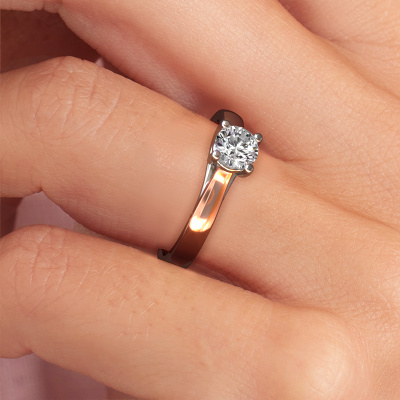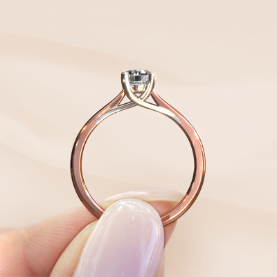 Der oben gezeigte Verlobungsring wird Mia 1 genannt. Wir nennen das einen Solitär-Ring, denn er hat einen einzelnen Edelstein. Es ist ein 14 Karat Roségold Verlobungsring, mit 0.40 crt rund Diamant. Dieser außergewöhnliche, moderne Roségold Solitär-Verlobungsring mit einem schönen, rund Diamant soll Ihrem Antrag ein Funkeln geben. Die offenen Krappen ermöglichen, dass Licht aus mehr Winkeln auf den Edelstein trifft. Wussten Sie, dass ein Diamant für ewige Liebe und Treue steht? Das macht ihn zum perfekten Mittelstück. Unsere Goldschmiede positioniert den Edelstein Ihrer Wahl sorgfältig oben auf dem Ring. Dadurch sticht er hervor. Jedes Schmuckstück wird von unseren Meister-Goldschmieden in unserem eigenen Studio für Sie gefertigt.Mit unserer modernen Technik können wir Schmuckstücke von höchster Qualität mit größter Sorgfalt für Sie entwerfen und anpassen. Unsere Verlobungsringe sind immer um 30 Prozent günstiger als bei anderen Juwelieren. Wir fertigen Verlobungsringe auf Bestellung, also müssen wir keine großen Lager unterhalten. Wenn Sie ein bestimmtes Budget haben, beraten wir Sie gerne entsprechend.Unsere Designer und Goldschmiede arbeiten jeden Tag zusammen und versuchen, neue Schmuckstücke zu kreieren. Vielleicht haben Sie irgendwo einen schönen, moderne Verlobungsring gefunden, nach dem Ihr einzigartiger Ring gestaltet werden kann. Setzen Sie sich mit uns in Verbindung. Wir machen Ihnen ein Angebot, basierend auf einem fairen Preis/Leistungsverhältnis, das Sie begeistern wird.Um es einfacher zu machen, bieten wir eine kostenlose 30-tägige Rücksendung.
