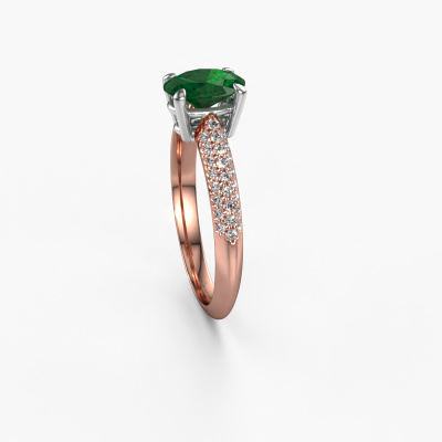 Der oben gezeigte Verlobungsring wird Morane OVL genannt. Wir nennen das einen Ring mit Pavé-Fassung. Die kleineren Steine des Rings befinden sich in einer geschlossenen Reihe, die für zusätzlichen Glanz sorgt. Dieser Ring aus 14 Karat Roségold ist besetzt mit Smaragd 7,5x5,5 mm. Welche Emotion möchten Sie vermitteln, wenn Sie für sie auf die Knie gehen? Dieser Roségold Verlobungsring ist mit atemberaubenden Smaragd besetzt, um Ihre ewige Liebe zu repräsentieren. Die Edelsteine werden sorgfältig von Hand ausgewählt und präzise von unserem erfahrenen Goldschmieden gesetzt. Die eindeutige Lichtreflexion auf dem Ring kann nur erfasst werden, wenn die Smaragd in perfekter Reihe stehen. Beim kunstvollen Schweißen und Polieren des Schmuckstücks wird der Lichteinfall ständig überwacht, bis der erfahrene Juwelier mit dem Ergebnis zufrieden ist. Ein Ring, der nur für Sie entworfen wurde, um Ihre Liebste so hell wie einen Smaragd erstrahlen zu lassen. Weil es nur eine spezielle Person gibt, die einen so einzigartigen Ring tragen kann! Mit diesem bedeutungsvollen Kunstwerk, dem Symbol der Unendlichkeit, beweisen Sie Ihre unsterbliche Liebe zu ihr und dass Sie den Rest Ihres Lebens mit niemand anderem teilen wollen. Wie kann sie da widerstehen? Jedes Schmuckstück ist um Ihrem Finger Glanz zu verleihen. Jeder Ring wird von unseren Goldschmieden liebevoll von Hand gefertigt.Mit unserer modernen Technik können wir Schmuckstücke von höchster Qualität mit größter Sorgfalt für Sie entwerfen und anpassen. Unsere Verlobungsringe sind immer um 30 Prozent günstiger als bei anderen Juwelieren. Wir fertigen Verlobungsringe auf Bestellung, also müssen wir keine großen Lager unterhalten. Wenn Sie ein bestimmtes Budget haben, beraten wir Sie gerne entsprechend.Unsere Designer und Goldschmiede arbeiten jeden Tag zusammen und versuchen, neue Schmuckstücke zu kreieren. Vielleicht haben Sie irgendwo einen schönen, moderne Verlobungsring gefunden, nach dem Ihr einzigartiger Ring gestaltet werden kann. Setzen Sie sich mit uns in Verbindung. Wir machen Ihnen ein Angebot, basierend auf einem fairen Preis/Leistungsverhältnis, das Sie begeistern wird.Um es einfacher zu machen, bieten wir eine kostenlose 30-tägige Rücksendung.