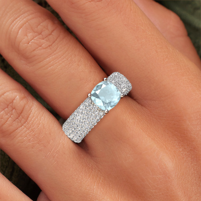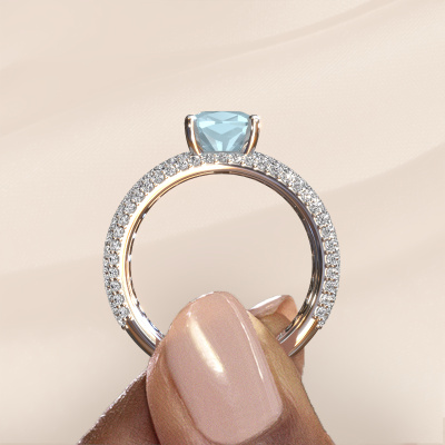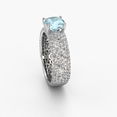 Dieser Ring aus 14 Karat Weißgold heißt Darcy und hat 7 mm Aquamarin. Dieser Pavé 14 Karat Weißgold Pavé Solitär Verlobungsring ist ein wahres Kunstwerk! Die Ornamente werden mit viel Geduld und großer Leidenschaft gefertigt. Um diesen Ring mit großer Präzision zu schaffen, erfordert dieses Handwerk ein scharfes Auge und eine geschickte Hand. Eine Herausforderung, die bei unseren erfahrenen Juwelieren ein Feuer entfacht. Die exquisiten Aquamarins sind auf eine besondere Art und Weise gefasst, so dass sie noch mehr hervorstechen. Dies verleiht dem Ring eine noch glamourösere Erscheinung. Der Ring an sich ist schon wegen der Edelsteine einzigartig, die wir speziell für diesen Ring auswählen. Obendrein wählen Sie die Edelmetalle aus, mit denen Ihr einzigartiger Ring für die außergewöhnlichste Frau Ihres Lebens gemacht wird! Jedes Schmuckstück ist einzigartig in jeder Hinsicht! Einfach nach Ihren Wünschen anzupassen.Da wir unsere eigenen Ringe entwerfen und liefern, können wir Ihnen einen Verlobungsring zu einem Preis anbieten, den Sie nirgendwo anders finden. Ein Ring wird auf Bestellung angefertigt, wodurch kein überschüssiges Material anfällt. So können wir Ihnen ein gutes Angebot zum besten Preis machen. Wir verstehen, dass es sich riskant anfühlt, Ihren Verlobungsring online zu kaufen. Jedoch helfen wir Ihnen gerne beim Designprozess unter Berücksichtigung Ihres Budgets.Verschiedene Arten von neuen Ringen werden täglich von unserem Team angefertigt. Vielleicht haben Sie irgendwo einen Pavé Solitär Verlobungsring gefunden. Einen, den Sie Ihrem Liebsten schenken möchten. Bitte zögern Sie nicht, unseren Schmuckdesignern Ihre Gedanken und Ihr Design zu zeigen. Wir würden gerne Ihr Design in einen exklusive Verlobungsring verwandeln. Sie können die Entwicklungen Ihres Ringdesigns verfolgen, da wir sehr detaillierte 3D-Zeichnungen verwenden. Darüber hinaus können Sie einen Dummy des Designs bestellen. Ein Dummy ist ein Kunststoffring, der nach Ihrem Ringdesign gestaltet werden kann. Sie können ihn anprobieren und prüfen, ob der Verlobungsring Ihren Vorstellungen entspricht. Wir senden Ihnen gerne ein unverbindliches Angebot zu einem fairen Preis/Leistungsverhältnis. Das Angebot wird Sie angesichts der Qualität des Rings und der Edelsteine verblüffen.Um es einfacher zu machen, bieten wir eine kostenlose 30-tägige Rücksendung.