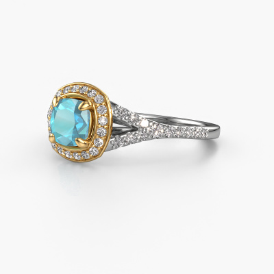 Der oben gezeigte Verlobungsring wird Pamela CUS genannt. Es ist ein Halo Ring, da er einen zentralen Edelstein und ein Band mit Pavé-Fassung hat. Der 14 Karat Weißgold ring ist mit einem 5.5 mm cussion Blau Topas-Mittelstein besetzt und um ihn herum eine Pavé-Fassung mit Lab grown Diamant. Was diesen Luxus, Weißgold Pavé Solitär Ring besonders macht, sind die kleineren Steine, die den zentralen Stein umschließen. Dieser wunderschöne Verlobungsring wird als Pavé Solitär Ring bezeichnet, da die kleineren Edelsteine dem zentralen Stein einen Lichthof geben. Damit die kleineren Steine den Mittelstein verstärken, müssen sie so platziert werden, dass keine Lichteinflüsse auftreten. Und hier kommen unsere erfahrenen Goldschmiede ins Spiel. Jeder einzelne Stein wird sorgfältig von Hand in den Ring gesetzt. Während der Herstellung wird der Lichteinfall ständig überprüft. So können wir sicherstellen, dass der spezielle Lichtkranz noch sichtbar ist. Am Ende erhalten Sie einen einzigartigen Verlobungsring mit einem Blaue Topas Ihrer Wahl in der Mitte. Sie können sich die Wirkung eines solchen Ringes vorstellen, wenn Sie ihn an ihrem besonderen Tag für sie zum Leuchten bringen. Nach Erhalt Ihrer Bestellung beginnen unsere Goldschmiede mit Leidenschaft den kreativen Prozess und fertigen Ihren Verlobungsring in unserem eigenen Studio. Da wir keine großen Lager haben, werden diese Kosten nicht an Sie weitergegeben. Unsere Preisgestaltung ist der Beweis dafür! Wir bieten Schmuck zum niedrigsten Preis, garantiert.Verschiedene Arten von neuen Ringen werden täglich von unserem Team angefertigt. Vielleicht haben Sie irgendwo einen Pavé Solitär Verlobungsring gefunden. Einen, den Sie Ihrem Liebsten schenken möchten. Bitte zögern Sie nicht, unseren Schmuckdesignern Ihre Gedanken und Ihr Design zu zeigen. Wir würden gerne Ihr Design in einen Luxus Verlobungsring verwandeln. Sie können die Entwicklungen Ihres Ringdesigns verfolgen, da wir sehr detaillierte 3D-Zeichnungen verwenden. Darüber hinaus können Sie einen Dummy des Designs bestellen. Ein Dummy ist ein Kunststoffring, der nach Ihrem Ringdesign gestaltet werden kann. Sie können ihn anprobieren und prüfen, ob der Verlobungsring Ihren Vorstellungen entspricht. Wir senden Ihnen gerne ein unverbindliches Angebot zu einem fairen Preis/Leistungsverhältnis. Das Angebot wird Sie angesichts der Qualität des Rings und der Edelsteine verblüffen.Um es einfacher zu machen, bieten wir eine kostenlose 30-tägige Rücksendung.