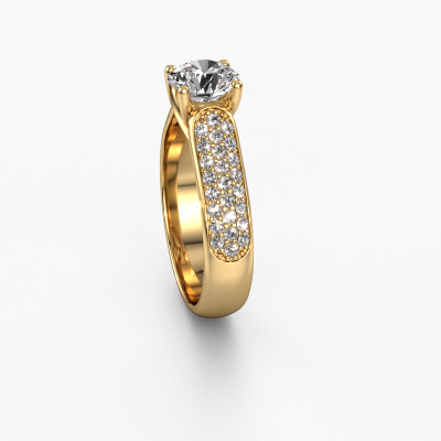 Der oben gezeigte Ring, mit dem Namen Leoness, nennen wir einen Pavé Solitär Verlobungsring. Der Cluster Ring trägt einem zentralen Edelstein, umgeben von kleineren Steinen. Diese Version in 14 Karat Gold hat einen rund Diamant von rund als Mittelstein, umschlossen von kleineren Diamanten. Was diesen klassische Gold Pavé Solitär Ring besonders macht, sind die kleinen Edelsteine rund um den zentralen Diamant, die wie eine schöne Blume geformt sind. Der umgebende Steinkranz umrahmt den Mittelstein so, dass er größer erscheint. Diese Art von Verlobungsring wird auch Blumen- oder Rosettenring genannt. Es ist sehr wichtig, dass die kleineren Diamanten identisch positioniert sind, so dass es kein Spiel im Licht, sondern eine perfekte Einheit ergibt. Unsere erfahrenen Juweliere erledigen diese Arbeit. Jeder einzelne Stein wird sorgfältig von Hand gesetzt. Während der Herstellung wird der Lichteinfall ständig überwacht, um sicherzustellen, dass der spezielle Pavé Solitär-Effekt noch sichtbar ist. Am Ende bekommen Sie den perfekten Verlobungsring mit einem strahlenden Diamant Edelstein Herzstück. Sie können sich die Wirkung eines solchen Ringes vorstellen, wenn Sie ihn an ihrem besonderen Tag für die Liebe Ihres Lebens zum Leuchten bringen. Jedes Schmuckstück ist einzigartig in jeder Hinsicht! Einfach nach Ihren Wünschen anzupassen.Mit unserer modernen Technik können wir Schmuckstücke von höchster Qualität mit größter Sorgfalt für Sie entwerfen und anpassen. Unsere Verlobungsringe sind immer um 30 Prozent günstiger als bei anderen Juwelieren. Wir fertigen Verlobungsringe auf Bestellung, also müssen wir keine großen Lager unterhalten. Wenn Sie ein bestimmtes Budget haben, beraten wir Sie gerne entsprechend.Haben Sie irgendwo einen bestimmten Verlobungsring gefunden, den Sie Ihrem Liebsten schenken möchten? Sie können uns gerne sagen, was Sie wollen und wir werden Ihr Design in einen Einzigartigen klassische Verlobungsring verwandeln. Sie können die Entwicklungen Ihres Ringdesigns verfolgen, da wir 3D-Zeichnungen verwenden. Das gibt Ihnen eine realistische Vorschau, wie Ihr Design aussehen wird. Sie können auch einen Dummy vorbestellen. Ein Dummy ist ein Kunststoffring, der nach Ihrem Ringdesign gestaltet werden kann. Sie können ihn anprobieren und prüfen, ob seine Breite und Größe für Sie geeignet sind. Wir senden Ihnen gerne ein unverbindliches Angebot zu einem fairen Preis/Leistungsverhältnis. Sie werden in Anbetracht der Qualität des Rings und der Edelsteine überrascht sein.Um es einfacher zu machen, bieten wir eine kostenlose 30-tägige Rücksendung.