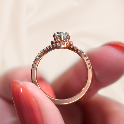Dieser Ring aus 14 Karat Roségold heißt Elli und hat 0.852 crt Diamant. Dieser zierliche 14 Karat Roségold Pavé Solitär Verlobungsring ist ein wahres Kunstwerk! Die Ornamente werden mit viel Geduld und großer Leidenschaft gefertigt. Um diesen Ring mit großer Präzision zu schaffen, erfordert dieses Handwerk ein scharfes Auge und eine geschickte Hand. Eine Herausforderung, die bei unseren erfahrenen Juwelieren ein Feuer entfacht. Die exquisiten Diamanten sind auf eine besondere Art und Weise gefasst, so dass sie noch mehr hervorstechen. Dies verleiht dem Ring eine noch glamourösere Erscheinung. Der Ring an sich ist schon wegen der Edelsteine einzigartig, die wir speziell für diesen Ring auswählen. Obendrein wählen Sie die Edelmetalle aus, mit denen Ihr einzigartiger Ring für die außergewöhnlichste Frau Ihres Lebens gemacht wird! Jedes Schmuckstück wird nur für Sie persönlich hergestellt, mit Liebe zum Detail und Design.Nach Erhalt Ihrer Bestellung beginnen unsere Goldschmiede mit Leidenschaft den kreativen Prozess und fertigen Ihren Verlobungsring in unserem eigenen Studio. Da wir keine großen Lager haben, werden diese Kosten nicht an Sie weitergegeben. Unsere Preisgestaltung ist der Beweis dafür! Wir bieten Schmuck zum niedrigsten Preis, garantiert.Unsere Designer und Goldschmiede arbeiten jeden Tag zusammen und versuchen, neue Schmuckstücke zu kreieren. Vielleicht haben Sie irgendwo einen schönen, exklusive Verlobungsring gefunden, nach dem Ihr einzigartiger Ring gestaltet werden kann. Setzen Sie sich mit uns in Verbindung. Wir machen Ihnen ein Angebot, basierend auf einem fairen Preis/Leistungsverhältnis, das Sie begeistern wird.Um es einfacher zu machen, bieten wir eine kostenlose 30-tägige Rücksendung.