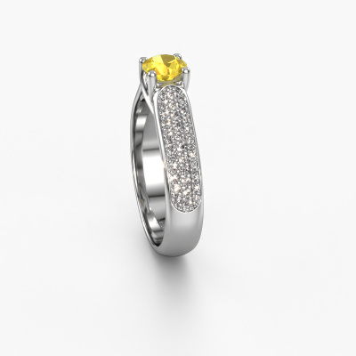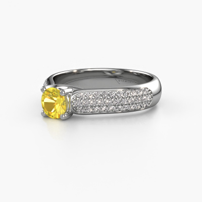 Der oben gezeigte Ring, mit dem Namen Leoness, nennen wir einen Pavé Solitär Verlobungsring. Der Cluster Ring trägt einem zentralen Edelstein, umgeben von kleineren Steinen. Diese Version in Platin hat einen rund Gelb Saphir von rund als Mittelstein, umschlossen von kleineren Diamanten. Was diesen klassische Platin Pavé Solitär Ring besonders macht, sind die kleinen Edelsteine rund um den zentralen Gelb Saphir, die wie eine schöne Blume geformt sind. Der umgebende Steinkranz umrahmt den Mittelstein so, dass er größer erscheint. Diese Art von Verlobungsring wird auch Blumen- oder Rosettenring genannt. Es ist sehr wichtig, dass die kleineren Gelb Saphir identisch positioniert sind, so dass es kein Spiel im Licht, sondern eine perfekte Einheit ergibt. Unsere erfahrenen Juweliere erledigen diese Arbeit. Jeder einzelne Stein wird sorgfältig von Hand gesetzt. Während der Herstellung wird der Lichteinfall ständig überwacht, um sicherzustellen, dass der spezielle Pavé Solitär-Effekt noch sichtbar ist. Am Ende bekommen Sie den perfekten Verlobungsring mit einem strahlenden Gelb Saphir Edelstein Herzstück. Sie können sich die Wirkung eines solchen Ringes vorstellen, wenn Sie ihn an ihrem besonderen Tag für die Liebe Ihres Lebens zum Leuchten bringen. Jedes Schmuckstück ist einzigartig in jeder Hinsicht! Einfach nach Ihren Wünschen anzupassen.Mit unserer modernen Technik können wir Schmuckstücke von höchster Qualität mit größter Sorgfalt für Sie entwerfen und anpassen. Unsere Verlobungsringe sind immer um 30 Prozent günstiger als bei anderen Juwelieren. Wir fertigen Verlobungsringe auf Bestellung, also müssen wir keine großen Lager unterhalten. Wenn Sie ein bestimmtes Budget haben, beraten wir Sie gerne entsprechend.Haben Sie irgendwo einen bestimmten Verlobungsring gefunden, den Sie Ihrem Liebsten schenken möchten? Sie können uns gerne sagen, was Sie wollen und wir werden Ihr Design in einen Einzigartigen klassische Verlobungsring verwandeln. Sie können die Entwicklungen Ihres Ringdesigns verfolgen, da wir 3D-Zeichnungen verwenden. Das gibt Ihnen eine realistische Vorschau, wie Ihr Design aussehen wird. Sie können auch einen Dummy vorbestellen. Ein Dummy ist ein Kunststoffring, der nach Ihrem Ringdesign gestaltet werden kann. Sie können ihn anprobieren und prüfen, ob seine Breite und Größe für Sie geeignet sind. Wir senden Ihnen gerne ein unverbindliches Angebot zu einem fairen Preis/Leistungsverhältnis. Sie werden in Anbetracht der Qualität des Rings und der Edelsteine überrascht sein.Um es einfacher zu machen, bieten wir eine kostenlose 30-tägige Rücksendung.