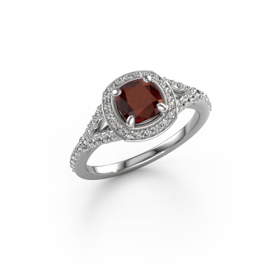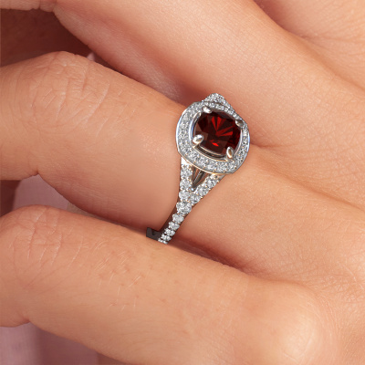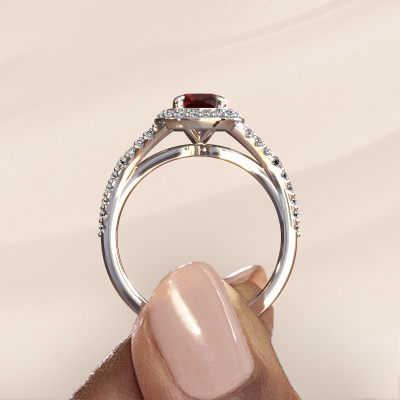 Der oben gezeigte Verlobungsring wird Pamela CUS genannt. Es ist ein Halo Ring, da er einen zentralen Edelstein und ein Band mit Pavé-Fassung hat. Der Platin ring ist mit einem 5.5 mm cussion Granat-Mittelstein besetzt und um ihn herum eine Pavé-Fassung mit Lab grown Diamant. Was diesen Luxus, Platin Pavé Solitär Ring besonders macht, sind die kleineren Steine, die den zentralen Stein umschließen. Dieser wunderschöne Verlobungsring wird als Pavé Solitär Ring bezeichnet, da die kleineren Edelsteine dem zentralen Stein einen Lichthof geben. Damit die kleineren Steine den Mittelstein verstärken, müssen sie so platziert werden, dass keine Lichteinflüsse auftreten. Und hier kommen unsere erfahrenen Goldschmiede ins Spiel. Jeder einzelne Stein wird sorgfältig von Hand in den Ring gesetzt. Während der Herstellung wird der Lichteinfall ständig überprüft. So können wir sicherstellen, dass der spezielle Lichtkranz noch sichtbar ist. Am Ende erhalten Sie einen einzigartigen Verlobungsring mit einem Granat Ihrer Wahl in der Mitte. Sie können sich die Wirkung eines solchen Ringes vorstellen, wenn Sie ihn an ihrem besonderen Tag für sie zum Leuchten bringen. Nach Erhalt Ihrer Bestellung beginnen unsere Goldschmiede mit Leidenschaft den kreativen Prozess und fertigen Ihren Verlobungsring in unserem eigenen Studio. Da wir keine großen Lager haben, werden diese Kosten nicht an Sie weitergegeben. Unsere Preisgestaltung ist der Beweis dafür! Wir bieten Schmuck zum niedrigsten Preis, garantiert.Verschiedene Arten von neuen Ringen werden täglich von unserem Team angefertigt. Vielleicht haben Sie irgendwo einen Pavé Solitär Verlobungsring gefunden. Einen, den Sie Ihrem Liebsten schenken möchten. Bitte zögern Sie nicht, unseren Schmuckdesignern Ihre Gedanken und Ihr Design zu zeigen. Wir würden gerne Ihr Design in einen Luxus Verlobungsring verwandeln. Sie können die Entwicklungen Ihres Ringdesigns verfolgen, da wir sehr detaillierte 3D-Zeichnungen verwenden. Darüber hinaus können Sie einen Dummy des Designs bestellen. Ein Dummy ist ein Kunststoffring, der nach Ihrem Ringdesign gestaltet werden kann. Sie können ihn anprobieren und prüfen, ob der Verlobungsring Ihren Vorstellungen entspricht. Wir senden Ihnen gerne ein unverbindliches Angebot zu einem fairen Preis/Leistungsverhältnis. Das Angebot wird Sie angesichts der Qualität des Rings und der Edelsteine verblüffen.Um es einfacher zu machen, bieten wir eine kostenlose 30-tägige Rücksendung.