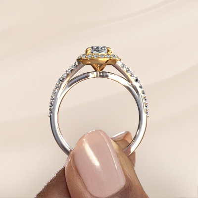 Der oben gezeigte Verlobungsring wird Pamela CUS genannt. Es ist ein Halo Ring, da er einen zentralen Edelstein und ein Band mit Pavé-Fassung hat. Der 14 Karat Weißgold ring ist mit einem 1.00 crt cussion Lab-grown Diamant-Mittelstein besetzt und um ihn herum eine Pavé-Fassung mit Lab grown Diamant. Was diesen Luxus, Weißgold Pavé Solitär Ring besonders macht, sind die kleineren Steine, die den zentralen Stein umschließen. Dieser wunderschöne Verlobungsring wird als Pavé Solitär Ring bezeichnet, da die kleineren Edelsteine dem zentralen Stein einen Lichthof geben. Damit die kleineren Steine den Mittelstein verstärken, müssen sie so platziert werden, dass keine Lichteinflüsse auftreten. Und hier kommen unsere erfahrenen Goldschmiede ins Spiel. Jeder einzelne Stein wird sorgfältig von Hand in den Ring gesetzt. Während der Herstellung wird der Lichteinfall ständig überprüft. So können wir sicherstellen, dass der spezielle Lichtkranz noch sichtbar ist. Am Ende erhalten Sie einen einzigartigen Verlobungsring mit einem Lab grown Diamant Ihrer Wahl in der Mitte. Sie können sich die Wirkung eines solchen Ringes vorstellen, wenn Sie ihn an ihrem besonderen Tag für sie zum Leuchten bringen. Nach Erhalt Ihrer Bestellung beginnen unsere Goldschmiede mit Leidenschaft den kreativen Prozess und fertigen Ihren Verlobungsring in unserem eigenen Studio. Da wir keine großen Lager haben, werden diese Kosten nicht an Sie weitergegeben. Unsere Preisgestaltung ist der Beweis dafür! Wir bieten Schmuck zum niedrigsten Preis, garantiert.Verschiedene Arten von neuen Ringen werden täglich von unserem Team angefertigt. Vielleicht haben Sie irgendwo einen Pavé Solitär Verlobungsring gefunden. Einen, den Sie Ihrem Liebsten schenken möchten. Bitte zögern Sie nicht, unseren Schmuckdesignern Ihre Gedanken und Ihr Design zu zeigen. Wir würden gerne Ihr Design in einen Luxus Verlobungsring verwandeln. Sie können die Entwicklungen Ihres Ringdesigns verfolgen, da wir sehr detaillierte 3D-Zeichnungen verwenden. Darüber hinaus können Sie einen Dummy des Designs bestellen. Ein Dummy ist ein Kunststoffring, der nach Ihrem Ringdesign gestaltet werden kann. Sie können ihn anprobieren und prüfen, ob der Verlobungsring Ihren Vorstellungen entspricht. Wir senden Ihnen gerne ein unverbindliches Angebot zu einem fairen Preis/Leistungsverhältnis. Das Angebot wird Sie angesichts der Qualität des Rings und der Edelsteine verblüffen.Um es einfacher zu machen, bieten wir eine kostenlose 30-tägige Rücksendung.