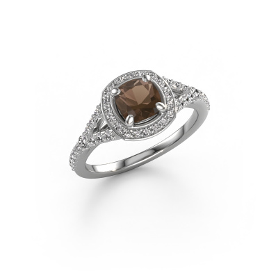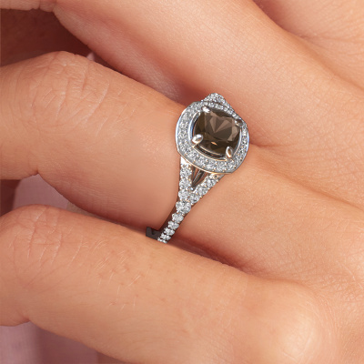 Der oben gezeigte Verlobungsring wird Pamela CUS genannt. Es ist ein Halo Ring, da er einen zentralen Edelstein und ein Band mit Pavé-Fassung hat. Der Platin ring ist mit einem 5.5 mm cussion Rauchquarz-Mittelstein besetzt und um ihn herum eine Pavé-Fassung mit Lab grown Diamant. Was diesen Luxus, Platin Pavé Solitär Ring besonders macht, sind die kleineren Steine, die den zentralen Stein umschließen. Dieser wunderschöne Verlobungsring wird als Pavé Solitär Ring bezeichnet, da die kleineren Edelsteine dem zentralen Stein einen Lichthof geben. Damit die kleineren Steine den Mittelstein verstärken, müssen sie so platziert werden, dass keine Lichteinflüsse auftreten. Und hier kommen unsere erfahrenen Goldschmiede ins Spiel. Jeder einzelne Stein wird sorgfältig von Hand in den Ring gesetzt. Während der Herstellung wird der Lichteinfall ständig überprüft. So können wir sicherstellen, dass der spezielle Lichtkranz noch sichtbar ist. Am Ende erhalten Sie einen einzigartigen Verlobungsring mit einem Rauchquarz Ihrer Wahl in der Mitte. Sie können sich die Wirkung eines solchen Ringes vorstellen, wenn Sie ihn an ihrem besonderen Tag für sie zum Leuchten bringen. Nach Erhalt Ihrer Bestellung beginnen unsere Goldschmiede mit Leidenschaft den kreativen Prozess und fertigen Ihren Verlobungsring in unserem eigenen Studio. Da wir keine großen Lager haben, werden diese Kosten nicht an Sie weitergegeben. Unsere Preisgestaltung ist der Beweis dafür! Wir bieten Schmuck zum niedrigsten Preis, garantiert.Verschiedene Arten von neuen Ringen werden täglich von unserem Team angefertigt. Vielleicht haben Sie irgendwo einen Pavé Solitär Verlobungsring gefunden. Einen, den Sie Ihrem Liebsten schenken möchten. Bitte zögern Sie nicht, unseren Schmuckdesignern Ihre Gedanken und Ihr Design zu zeigen. Wir würden gerne Ihr Design in einen Luxus Verlobungsring verwandeln. Sie können die Entwicklungen Ihres Ringdesigns verfolgen, da wir sehr detaillierte 3D-Zeichnungen verwenden. Darüber hinaus können Sie einen Dummy des Designs bestellen. Ein Dummy ist ein Kunststoffring, der nach Ihrem Ringdesign gestaltet werden kann. Sie können ihn anprobieren und prüfen, ob der Verlobungsring Ihren Vorstellungen entspricht. Wir senden Ihnen gerne ein unverbindliches Angebot zu einem fairen Preis/Leistungsverhältnis. Das Angebot wird Sie angesichts der Qualität des Rings und der Edelsteine verblüffen.Um es einfacher zu machen, bieten wir eine kostenlose 30-tägige Rücksendung.
