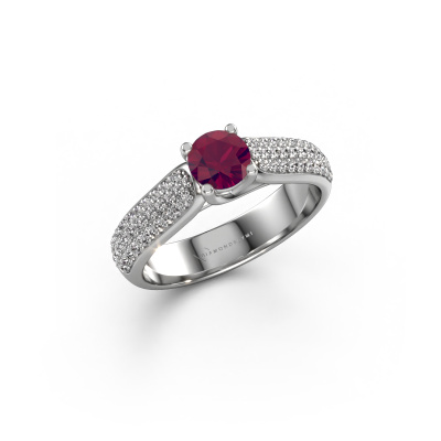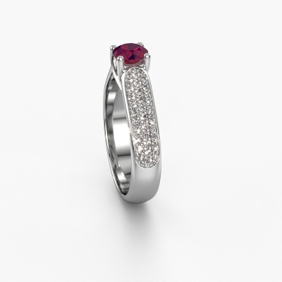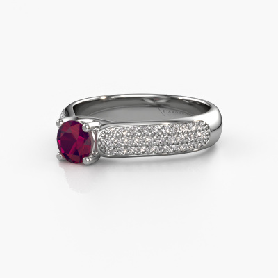 Der oben gezeigte Ring, mit dem Namen Leoness, nennen wir einen Pavé Solitär Verlobungsring. Der Cluster Ring trägt einem zentralen Edelstein, umgeben von kleineren Steinen. Diese Version in Platin hat einen rund Rhodolit von rund als Mittelstein, umschlossen von kleineren Diamanten. Was diesen klassische Platin Pavé Solitär Ring besonders macht, sind die kleinen Edelsteine rund um den zentralen Rhodolit, die wie eine schöne Blume geformt sind. Der umgebende Steinkranz umrahmt den Mittelstein so, dass er größer erscheint. Diese Art von Verlobungsring wird auch Blumen- oder Rosettenring genannt. Es ist sehr wichtig, dass die kleineren Rhodolit identisch positioniert sind, so dass es kein Spiel im Licht, sondern eine perfekte Einheit ergibt. Unsere erfahrenen Juweliere erledigen diese Arbeit. Jeder einzelne Stein wird sorgfältig von Hand gesetzt. Während der Herstellung wird der Lichteinfall ständig überwacht, um sicherzustellen, dass der spezielle Pavé Solitär-Effekt noch sichtbar ist. Am Ende bekommen Sie den perfekten Verlobungsring mit einem strahlenden Rhodolit Edelstein Herzstück. Sie können sich die Wirkung eines solchen Ringes vorstellen, wenn Sie ihn an ihrem besonderen Tag für die Liebe Ihres Lebens zum Leuchten bringen. Jedes Schmuckstück ist einzigartig in jeder Hinsicht! Einfach nach Ihren Wünschen anzupassen.Mit unserer modernen Technik können wir Schmuckstücke von höchster Qualität mit größter Sorgfalt für Sie entwerfen und anpassen. Unsere Verlobungsringe sind immer um 30 Prozent günstiger als bei anderen Juwelieren. Wir fertigen Verlobungsringe auf Bestellung, also müssen wir keine großen Lager unterhalten. Wenn Sie ein bestimmtes Budget haben, beraten wir Sie gerne entsprechend.Haben Sie irgendwo einen bestimmten Verlobungsring gefunden, den Sie Ihrem Liebsten schenken möchten? Sie können uns gerne sagen, was Sie wollen und wir werden Ihr Design in einen Einzigartigen klassische Verlobungsring verwandeln. Sie können die Entwicklungen Ihres Ringdesigns verfolgen, da wir 3D-Zeichnungen verwenden. Das gibt Ihnen eine realistische Vorschau, wie Ihr Design aussehen wird. Sie können auch einen Dummy vorbestellen. Ein Dummy ist ein Kunststoffring, der nach Ihrem Ringdesign gestaltet werden kann. Sie können ihn anprobieren und prüfen, ob seine Breite und Größe für Sie geeignet sind. Wir senden Ihnen gerne ein unverbindliches Angebot zu einem fairen Preis/Leistungsverhältnis. Sie werden in Anbetracht der Qualität des Rings und der Edelsteine überrascht sein.Um es einfacher zu machen, bieten wir eine kostenlose 30-tägige Rücksendung.