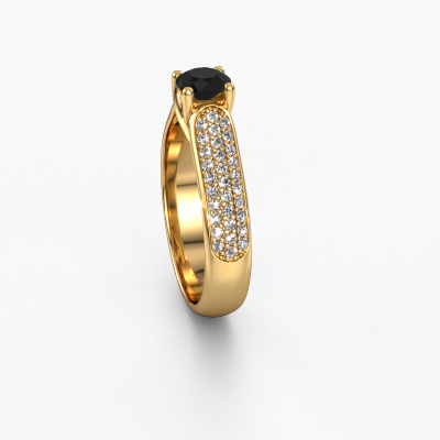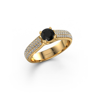 Der oben gezeigte Ring, mit dem Namen Leoness, nennen wir einen Pavé Solitär Verlobungsring. Der Cluster Ring trägt einem zentralen Edelstein, umgeben von kleineren Steinen. Diese Version in 14 Karat Gold hat einen rund Schwarz Diamant von rund als Mittelstein, umschlossen von kleineren Diamanten. Was diesen klassische Gold Pavé Solitär Ring besonders macht, sind die kleinen Edelsteine rund um den zentralen Schwarz Diamant, die wie eine schöne Blume geformt sind. Der umgebende Steinkranz umrahmt den Mittelstein so, dass er größer erscheint. Diese Art von Verlobungsring wird auch Blumen- oder Rosettenring genannt. Es ist sehr wichtig, dass die kleineren Schwarze Diamanten identisch positioniert sind, so dass es kein Spiel im Licht, sondern eine perfekte Einheit ergibt. Unsere erfahrenen Juweliere erledigen diese Arbeit. Jeder einzelne Stein wird sorgfältig von Hand gesetzt. Während der Herstellung wird der Lichteinfall ständig überwacht, um sicherzustellen, dass der spezielle Pavé Solitär-Effekt noch sichtbar ist. Am Ende bekommen Sie den perfekten Verlobungsring mit einem strahlenden Schwarz Diamant Edelstein Herzstück. Sie können sich die Wirkung eines solchen Ringes vorstellen, wenn Sie ihn an ihrem besonderen Tag für die Liebe Ihres Lebens zum Leuchten bringen. Jedes Schmuckstück ist einzigartig in jeder Hinsicht! Einfach nach Ihren Wünschen anzupassen.Mit unserer modernen Technik können wir Schmuckstücke von höchster Qualität mit größter Sorgfalt für Sie entwerfen und anpassen. Unsere Verlobungsringe sind immer um 30 Prozent günstiger als bei anderen Juwelieren. Wir fertigen Verlobungsringe auf Bestellung, also müssen wir keine großen Lager unterhalten. Wenn Sie ein bestimmtes Budget haben, beraten wir Sie gerne entsprechend.Haben Sie irgendwo einen bestimmten Verlobungsring gefunden, den Sie Ihrem Liebsten schenken möchten? Sie können uns gerne sagen, was Sie wollen und wir werden Ihr Design in einen Einzigartigen klassische Verlobungsring verwandeln. Sie können die Entwicklungen Ihres Ringdesigns verfolgen, da wir 3D-Zeichnungen verwenden. Das gibt Ihnen eine realistische Vorschau, wie Ihr Design aussehen wird. Sie können auch einen Dummy vorbestellen. Ein Dummy ist ein Kunststoffring, der nach Ihrem Ringdesign gestaltet werden kann. Sie können ihn anprobieren und prüfen, ob seine Breite und Größe für Sie geeignet sind. Wir senden Ihnen gerne ein unverbindliches Angebot zu einem fairen Preis/Leistungsverhältnis. Sie werden in Anbetracht der Qualität des Rings und der Edelsteine überrascht sein.Um es einfacher zu machen, bieten wir eine kostenlose 30-tägige Rücksendung.