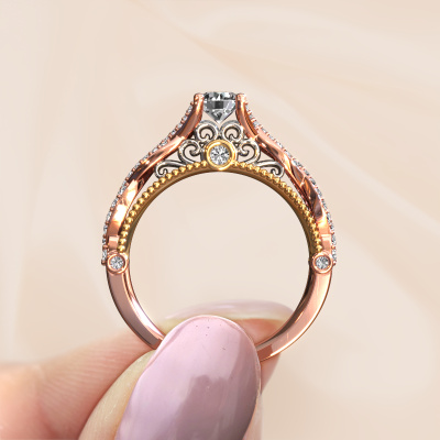 Dieser gewagte Verlobungsring aus 14 Karat Roségold heißt Chantelle und hat 0.773 crt Diamant. Ist Ihre Freundin von Vintage begeistert? Dann wird dieser Roségold Verlobungsring sicherlich perfekt zu ihrem Stil passen. Ein trendiger Ring mit einem Hauch von klassischem Schmuck. Ein wirklich atemberaubendes, romantisches Design! Vor allem, wenn Sie den Ring nach ihren Wünschen anpassen. Dieser Vintage Pavé Solitär Verlobungsring ist mit atemberaubenden Diamanten besetzt. Wie Sie sehen können, sind Sie der Boss bei der Auswahl des Edelsteins, der am besten zu Ihrer Freundin passt. Jeder Edelstein wird sorgfältig von unseren Händlern ausgewählt, die auf der ganzen Welt verteilt sind. Nichts als die besten Edelsteine für unseren erfahrenen Juwelier! Schließlich ist es seine Krönung! Jedes Schmuckstück wird hergestellt von einem Team leidenschaftlicher Goldschmiede und Schmuckdesigner. Das wird Ihr Kronjuwel unbedingt zu einem Blickfang machen.Haben Sie ein bestimmtes Budget? Sie können uns gerne kontaktieren, damit wir Ihre Optionen besprechen können. Wir bieten unsere Verlobungsringe zum garantiert besten Preis, denn wir fertigen sie auf Bestellung. Solche Preise finden Sie nirgendwo anders!Unsere Designer und Goldschmiede arbeiten jeden Tag zusammen und versuchen, neue Schmuckstücke zu kreieren. Vielleicht haben Sie irgendwo einen schönen, Vintage Verlobungsring gefunden, nach dem Ihr einzigartiger Ring gestaltet werden kann. Setzen Sie sich mit uns in Verbindung. Wir machen Ihnen ein Angebot, basierend auf einem fairen Preis/Leistungsverhältnis, das Sie begeistern wird.Um es einfacher zu machen, bieten wir eine kostenlose 30-tägige Rücksendung.