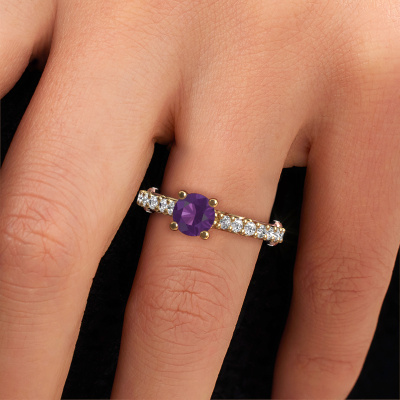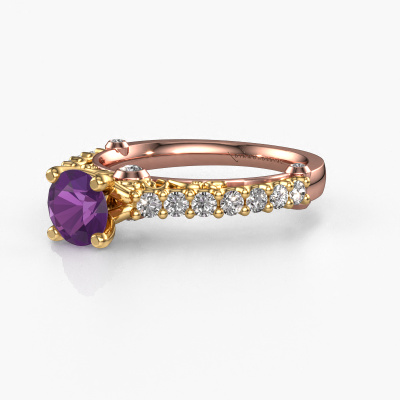 Dieser besondere Verlobungsring aus 14 Karat Roségold mit 6 mm Amethyst heißt Shaunda. Für Sie gibt es nur eine Person in Ihrem Leben, die in einer Menschenmenge auffällt. Nur eine, die Ihr Herz höherschlagen lässt. Ein wahres Juwel! Sie verdient vor allem ein besonderes Geschenk. Ein einzigartiges, maßgefertigtes Schmuckstück, das allein zu ihren Ehren angefertigt wurde. Wir glauben, dass dieser Ring perfekt für Ihren besonderen Moment ist. Jedes Detail dieses exklusiven, Roségold Pavé Solitär Verlobungsring wird von Hand ausgewählt, bearbeitet und poliert - von unserem erfahrenen Juwelier in unserem eigenen Studio. Wir streben nach dem perfekten Design und der Zusammensetzung des Rings, damit er die einzigartigen Eigenschaften unserer Amethysten unterstreicht und sie noch heller erstrahlen lässt. Es braucht viel Präzision, aber am Ende zahlt es sich wegen der Schönheit des Rings aus. Und das ist unser Hauptziel. Das ist es, was uns begeistert. Das Besondere an unserem Konfigurator ist dass Sie selbst einem Schmuckstück zusammenstellen können zu einem eigenen persönlichen Schmuckstück. Dieser Pavé Solitär Verlobungsring ist gefertigt in der Edelmetall Kombination Roségold mit Gold, aber Sie können also auch wählen aus anderen Farben. Jedes Schmuckstück lässt Ihren Finger erstrahlen. Ihr Ring ist mit Liebe von unseren Goldschmieden handgefertigt.. Durch die Kombination modernster Technik mit uralter Handwerkskunst können wir alle Verlobungsringe in unserem eigenen Studio anfertigen. Jedes Schmuckstück wird auf Anfrage gefertigt. Das ist vorteilhaft, weil wir Ihnen dadurch einen Preis anbieten können, den Sie nirgendwo anders finden.Unsere Designer und Goldschmiede arbeiten jeden Tag zusammen und versuchen, neue Schmuckstücke zu kreieren. Vielleicht haben Sie irgendwo einen schönen, Vintage Verlobungsring gefunden, nach dem Ihr einzigartiger Ring gestaltet werden kann. Setzen Sie sich mit uns in Verbindung. Wir machen Ihnen ein Angebot, basierend auf einem fairen Preis/Leistungsverhältnis, das Sie begeistern wird.Um es einfacher zu machen, bieten wir eine kostenlose 30-tägige Rücksendung.