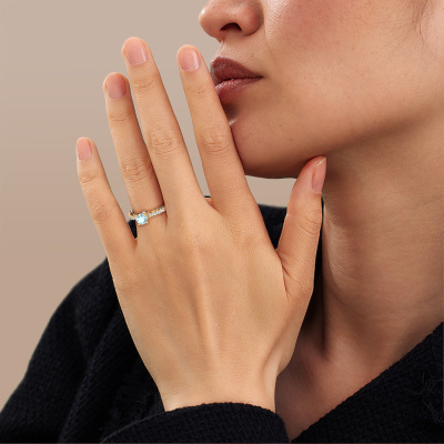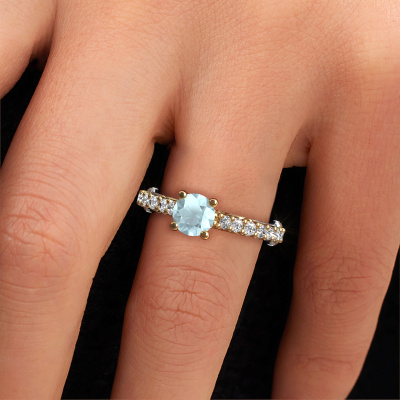 Dieser besondere Verlobungsring aus 14 Karat Weißgold mit 6 mm Aquamarin heißt Shaunda. Für Sie gibt es nur eine Person in Ihrem Leben, die in einer Menschenmenge auffällt. Nur eine, die Ihr Herz höherschlagen lässt. Ein wahres Juwel! Sie verdient vor allem ein besonderes Geschenk. Ein einzigartiges, maßgefertigtes Schmuckstück, das allein zu ihren Ehren angefertigt wurde. Wir glauben, dass dieser Ring perfekt für Ihren besonderen Moment ist. Jedes Detail dieses exklusiven, Weißgold Pavé Solitär Verlobungsring wird von Hand ausgewählt, bearbeitet und poliert - von unserem erfahrenen Juwelier in unserem eigenen Studio. Wir streben nach dem perfekten Design und der Zusammensetzung des Rings, damit er die einzigartigen Eigenschaften unserer Aquamarins unterstreicht und sie noch heller erstrahlen lässt. Es braucht viel Präzision, aber am Ende zahlt es sich wegen der Schönheit des Rings aus. Und das ist unser Hauptziel. Das ist es, was uns begeistert. Das Besondere an unserem Konfigurator ist dass Sie selbst einem Schmuckstück zusammenstellen können zu einem eigenen persönlichen Schmuckstück. Dieser Pavé Solitär Verlobungsring ist gefertigt in der Edelmetall Kombination Weißgold mit Gold, aber Sie können also auch wählen aus anderen Farben. Jedes Schmuckstück lässt Ihren Finger erstrahlen. Ihr Ring ist mit Liebe von unseren Goldschmieden handgefertigt.. Durch die Kombination modernster Technik mit uralter Handwerkskunst können wir alle Verlobungsringe in unserem eigenen Studio anfertigen. Jedes Schmuckstück wird auf Anfrage gefertigt. Das ist vorteilhaft, weil wir Ihnen dadurch einen Preis anbieten können, den Sie nirgendwo anders finden.Unsere Designer und Goldschmiede arbeiten jeden Tag zusammen und versuchen, neue Schmuckstücke zu kreieren. Vielleicht haben Sie irgendwo einen schönen, Vintage Verlobungsring gefunden, nach dem Ihr einzigartiger Ring gestaltet werden kann. Setzen Sie sich mit uns in Verbindung. Wir machen Ihnen ein Angebot, basierend auf einem fairen Preis/Leistungsverhältnis, das Sie begeistern wird.Um es einfacher zu machen, bieten wir eine kostenlose 30-tägige Rücksendung.