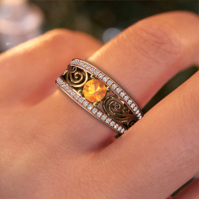 Dieser Filigrane Verlobungsring aus 14 Karat Roségold mit 5 mm Citrin heißt Julliana. Für Sie gibt es nur eine Person in Ihrem Leben, die in einer Menschenmenge auffällt. Nur eine, die Ihr Herz höherschlagen lässt. Ein wahres Juwel! Sie verdient vor allem ein besonderes Geschenk. Ein einzigartiges, maßgefertigtes Schmuckstück, das allein zu ihren Ehren angefertigt wurde. Wir glauben, dass dieser Ring perfekt für Ihren besonderen Moment ist. Jedes Detail dieses exklusiven, Roségold Pavé Solitär Verlobungsring wird von Hand ausgewählt, bearbeitet und poliert - von unserem erfahrenen Juwelier in unserem eigenen Studio. Wir streben nach dem perfekten Design und der Zusammensetzung des Rings, damit er die einzigartigen Eigenschaften unserer Citrin unterstreicht und sie noch heller erstrahlen lässt. Es braucht viel Präzision, aber am Ende zahlt es sich wegen der Schönheit des Rings aus. Und das ist unser Hauptziel. Das ist es, was uns begeistert. Das Besondere an unserem Konfigurator ist dass Sie selbst einem Schmuckstück zusammenstellen können zu einem eigenen persönlichen Schmuckstück. Dieser Pavé Solitär Verlobungsring ist gefertigt in der Edelmetall Kombination Roségold mit Gold, aber Sie können also auch wählen aus anderen Farben. Jedes Schmuckstück wird von unseren Meister-Goldschmieden in unserem eigenen Studio für Sie gefertigt.. Mit unserer modernen Technik können wir Schmuckstücke von höchster Qualität mit größter Sorgfalt für Sie entwerfen und anpassen. Unsere Verlobungsringe sind immer um 30 Prozent günstiger als bei anderen Juwelieren. Wir fertigen Verlobungsringe auf Bestellung, also müssen wir keine großen Lager unterhalten. Wenn Sie ein bestimmtes Budget haben, beraten wir Sie gerne entsprechend.Unser Team fügt unserer Online-Kollektion täglich neue Designs hinzu. Unsere Designer und Goldschmiede arbeiten zusammen, um das beste Design zu kreieren. Wir bemühen uns, eine vielfältige Kollektion von Schmuckstücken anzubieten. Vielleicht haben Sie ein bestimmtes Design im Sinn. Eines, dass Sie irgendwo gesehen haben. Gerne geben wir Ihnen eine kostenlose Beratung. Wir machen Ihnen ein Angebot, basierend auf einem fairen Preis/Leistungsverhältnis, das Sie verblüffen wird.Um es einfacher zu machen, bieten wir eine kostenlose 30-tägige Rücksendung.