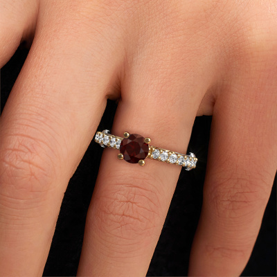 Dieser besondere Verlobungsring aus 14 Karat Weißgold mit 6 mm Granat heißt Shaunda. Für Sie gibt es nur eine Person in Ihrem Leben, die in einer Menschenmenge auffällt. Nur eine, die Ihr Herz höherschlagen lässt. Ein wahres Juwel! Sie verdient vor allem ein besonderes Geschenk. Ein einzigartiges, maßgefertigtes Schmuckstück, das allein zu ihren Ehren angefertigt wurde. Wir glauben, dass dieser Ring perfekt für Ihren besonderen Moment ist. Jedes Detail dieses exklusiven, Weißgold Pavé Solitär Verlobungsring wird von Hand ausgewählt, bearbeitet und poliert - von unserem erfahrenen Juwelier in unserem eigenen Studio. Wir streben nach dem perfekten Design und der Zusammensetzung des Rings, damit er die einzigartigen Eigenschaften unserer Granat unterstreicht und sie noch heller erstrahlen lässt. Es braucht viel Präzision, aber am Ende zahlt es sich wegen der Schönheit des Rings aus. Und das ist unser Hauptziel. Das ist es, was uns begeistert. Das Besondere an unserem Konfigurator ist dass Sie selbst einem Schmuckstück zusammenstellen können zu einem eigenen persönlichen Schmuckstück. Dieser Pavé Solitär Verlobungsring ist gefertigt in der Edelmetall Kombination Weißgold mit Gold, aber Sie können also auch wählen aus anderen Farben. Jedes Schmuckstück lässt Ihren Finger erstrahlen. Ihr Ring ist mit Liebe von unseren Goldschmieden handgefertigt.. Durch die Kombination modernster Technik mit uralter Handwerkskunst können wir alle Verlobungsringe in unserem eigenen Studio anfertigen. Jedes Schmuckstück wird auf Anfrage gefertigt. Das ist vorteilhaft, weil wir Ihnen dadurch einen Preis anbieten können, den Sie nirgendwo anders finden.Unsere Designer und Goldschmiede arbeiten jeden Tag zusammen und versuchen, neue Schmuckstücke zu kreieren. Vielleicht haben Sie irgendwo einen schönen, Vintage Verlobungsring gefunden, nach dem Ihr einzigartiger Ring gestaltet werden kann. Setzen Sie sich mit uns in Verbindung. Wir machen Ihnen ein Angebot, basierend auf einem fairen Preis/Leistungsverhältnis, das Sie begeistern wird.Um es einfacher zu machen, bieten wir eine kostenlose 30-tägige Rücksendung.