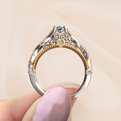 Dieser gewagte Verlobungsring aus 14 Karat Weißgold heißt Chantelle und hat 0.683 crt Diamant. Ist Ihre Freundin von Vintage begeistert? Dann wird dieser Weißgold Verlobungsring sicherlich perfekt zu ihrem Stil passen. Ein trendiger Ring mit einem Hauch von klassischem Schmuck. Ein wirklich atemberaubendes, romantisches Design! Vor allem, wenn Sie den Ring nach ihren Wünschen anpassen. Dieser Vintage Pavé Solitär Verlobungsring ist mit atemberaubenden Diamanten besetzt. Wie Sie sehen können, sind Sie der Boss bei der Auswahl des Edelsteins, der am besten zu Ihrer Freundin passt. Jeder Edelstein wird sorgfältig von unseren Händlern ausgewählt, die auf der ganzen Welt verteilt sind. Nichts als die besten Edelsteine für unseren erfahrenen Juwelier! Schließlich ist es seine Krönung! Jedes Schmuckstück wird hergestellt von einem Team leidenschaftlicher Goldschmiede und Schmuckdesigner. Das wird Ihr Kronjuwel unbedingt zu einem Blickfang machen.Haben Sie ein bestimmtes Budget? Sie können uns gerne kontaktieren, damit wir Ihre Optionen besprechen können. Wir bieten unsere Verlobungsringe zum garantiert besten Preis, denn wir fertigen sie auf Bestellung. Solche Preise finden Sie nirgendwo anders!Unsere Designer und Goldschmiede arbeiten jeden Tag zusammen und versuchen, neue Schmuckstücke zu kreieren. Vielleicht haben Sie irgendwo einen schönen, Vintage Verlobungsring gefunden, nach dem Ihr einzigartiger Ring gestaltet werden kann. Setzen Sie sich mit uns in Verbindung. Wir machen Ihnen ein Angebot, basierend auf einem fairen Preis/Leistungsverhältnis, das Sie begeistern wird.Um es einfacher zu machen, bieten wir eine kostenlose 30-tägige Rücksendung.