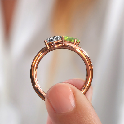 Dieser Verlobungsring aus 14 Karat Roségold heißt Chloe OVL-PER. Wie würden Sie den Stil der Liebe Ihres Lebens beschreiben? Hat sie einen einzigartigen Sinn für Stil? Diese umwerfende, Drehungen Roségold Verlobungsring mit 6.5x4.5 mm Peridot kann nach Ihren Wünschen angefertigt werden. Unsere Peridot wurden sorgfältig ausgewählt. Denn wir denken, dass Ihr Verlobungsring nur mit dem schönsten Edelstein gekrönt werden darf. Sehen Sie das auch so? Jedes Schmuckstück ist um Ihrem Finger Glanz zu verleihen. Jeder Ring wird von unseren Goldschmieden liebevoll von Hand gefertigt.Da wir unsere eigenen Ringe entwerfen und liefern, können wir Ihnen einen Verlobungsring zu einem Preis anbieten, den Sie nirgendwo anders finden. Ein Ring wird auf Bestellung angefertigt, wodurch kein überschüssiges Material anfällt. So können wir Ihnen ein gutes Angebot zum besten Preis machen. Wir verstehen, dass es sich riskant anfühlt, Ihren Verlobungsring online zu kaufen. Jedoch helfen wir Ihnen gerne beim Designprozess unter Berücksichtigung Ihres Budgets.Haben Sie einen bestimmten Ring im Sinn? Eines, dass Sie irgendwo gesehen haben. Bitte zögern Sie nicht, uns zu sagen, was Sie wollen und wir werden Ihr Design in einen Einzigartigen Verlobungsring verwandeln. Sie können die Entwicklungen Ihres Ringdesigns verfolgen, da wir 3D-Zeichnungen verwenden. Das gibt Ihnen eine realistische Vorschau Ihres Designs. Wir senden Ihnen gerne ein unverbindliches Angebot zu einem fairen Preis/Leistungsverhältnis. Es wird Sie erstaunen.Um es einfacher zu machen, bieten wir eine kostenlose 30-tägige Rücksendung.