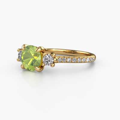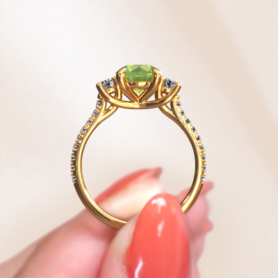 Dieser Verlobungsring aus 14 Karat Gold mit 6.8 mm Peridot heißt Jesica. Was macht Ihre Beziehung einzigartig? Was hat sie an sich, was Sie dazu bringt, auf die Knie zu fallen? Die einzigartige Verbindung zwischen Ihnen beiden wird durch einen ebenso einzigartigen Ring unterstrichen. Ein einzigartiger 3-stone Verlobungsring, der nur für sie gemacht wurde. Deshalb passt dieser Ring wie angegossen. Jedes einzelne Detail dieses graziöse, Gold Peridot Verlobungsring wird von unserem erfahrenen Goldschmieden in unserem eigenen Studio von Hand ausgesucht, bearbeitet und poliert. Das Endprodukt ist ein exquisiter Ring, einzigartig und bis zur Perfektion gebracht. Danach streben unsere erfahrenen Juweliere. Jedes Schmuckstück wird nur für Sie persönlich hergestellt, mit Liebe zum Detail und Design.Nach Erhalt Ihrer Bestellung beginnen unsere Goldschmiede mit Leidenschaft den kreativen Prozess und fertigen Ihren Verlobungsring in unserem eigenen Studio. Da wir keine großen Lager haben, werden diese Kosten nicht an Sie weitergegeben. Unsere Preisgestaltung ist der Beweis dafür! Wir bieten Schmuck zum niedrigsten Preis, garantiert.Verschiedene Arten von neuen Ringen werden täglich von unserem Team angefertigt. Vielleicht haben Sie irgendwo einen 3-stone Verlobungsring gefunden. Einen, den Sie Ihrem Liebsten schenken möchten. Bitte zögern Sie nicht, unseren Schmuckdesignern Ihre Gedanken und Ihr Design zu zeigen. Wir würden gerne Ihr Design in einen klassische Verlobungsring verwandeln. Sie können die Entwicklungen Ihres Ringdesigns verfolgen, da wir sehr detaillierte 3D-Zeichnungen verwenden. Darüber hinaus können Sie einen Dummy des Designs bestellen. Ein Dummy ist ein Kunststoffring, der nach Ihrem Ringdesign gestaltet werden kann. Sie können ihn anprobieren und prüfen, ob der Verlobungsring Ihren Vorstellungen entspricht. Wir senden Ihnen gerne ein unverbindliches Angebot zu einem fairen Preis/Leistungsverhältnis. Das Angebot wird Sie angesichts der Qualität des Rings und der Edelsteine verblüffen.Um es einfacher zu machen, bieten wir eine kostenlose 30-tägige Rücksendung.
