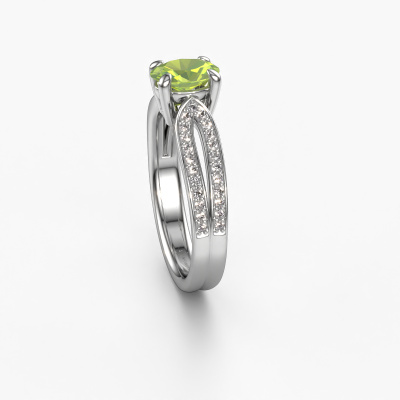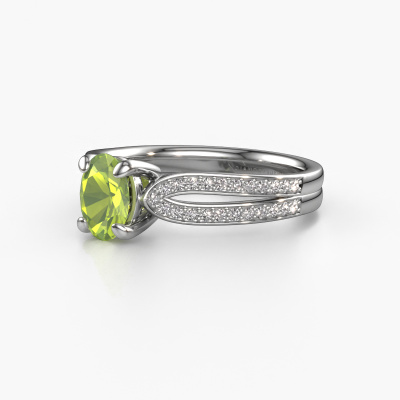 Der oben gezeigte Platin Verlobungsring wird Antonia ovl 2 genannt. Es ist ein Pavé Solitär Ring, da er einen zentralen Edelstein und ein Band mit Pavé-Fassung hat. Der moderne Pavé Solitär Verlobungsring ist in der Kombination Platin mit Platin und ist mit einem oval 7x5 mm Peridot-Mittelstein besetzt und das Band hat eine Pavé-Fassung mit Diamanten. Jedes Schmuckstück ist einzigartig in jeder Hinsicht! Einfach nach Ihren Wünschen anzupassen. Um den zentralen Stein noch mehr zu betonen, hat das Band eine Pavé-Fassung mit weiteren Peridot. Durch die offenen Krappen kann das Licht aus mehreren Winkeln auf den Peridot treffen und der Peridot-Ring funkelt noch mehr. Das obere Foto zeigt die leidenschaftlich handgefertigten Details des Rings. Die hohe Positionierung der Mittelstein ist ein echter Blickfang. Der perfekte Verlobungsring für das Kronjuwel Ihres Lebens!Durch die Kombination modernster Technik mit uralter Handwerkskunst können wir alle Verlobungsringe in unserem eigenen Studio anfertigen. Jedes Schmuckstück wird auf Anfrage gefertigt. Das ist vorteilhaft, weil wir Ihnen dadurch einen Preis anbieten können, den Sie nirgendwo anders finden.Unser Team fügt unserer Online-Kollektion täglich neue Designs hinzu. Unsere Designer und Goldschmiede arbeiten zusammen, um das beste Design zu kreieren. Wir bemühen uns, eine vielfältige Kollektion von Schmuckstücken anzubieten. Vielleicht haben Sie ein bestimmtes Design im Sinn. Eines, dass Sie irgendwo gesehen haben. Gerne geben wir Ihnen eine kostenlose Beratung. Wir machen Ihnen ein Angebot, basierend auf einem fairen Preis/Leistungsverhältnis, das Sie verblüffen wird.Um es einfacher zu machen, bieten wir eine kostenlose 30-tägige Rücksendung.
