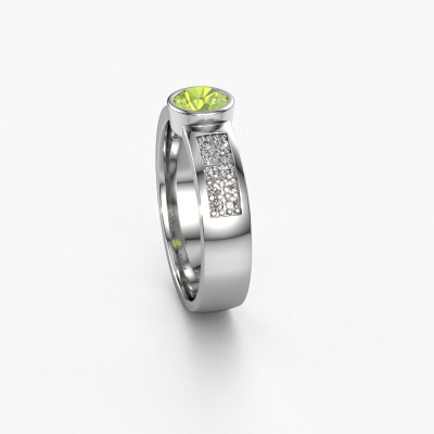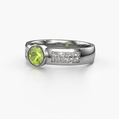 Der oben gezeigte Platin Verlobungsring wird Ise 3 genannt. Es ist ein Pavé Solitär Ring, da er einen zentralen Edelstein und ein Band mit Pavé-Fassung hat. Der moderne Pavé Solitär Verlobungsring ist in der Kombination Platin mit Platin und ist mit einem rund 4.7 mm Peridot-Mittelstein besetzt und das Band hat eine Pavé-Fassung mit Diamanten. Jedes Schmuckstück wird von unseren Meister-Goldschmieden in unserem eigenen Studio für Sie gefertigt. Um den zentralen Stein noch mehr zu betonen, hat das Band eine Pavé-Fassung mit weiteren Peridot. Durch die offenen Krappen kann das Licht aus mehreren Winkeln auf den Peridot treffen und der Peridot-Ring funkelt noch mehr. Das obere Foto zeigt die leidenschaftlich handgefertigten Details des Rings. Die hohe Positionierung der Mittelstein ist ein echter Blickfang. Der perfekte Verlobungsring für das Kronjuwel Ihres Lebens!Da wir unsere eigenen Ringe entwerfen und liefern, können wir Ihnen einen Verlobungsring zu einem Preis anbieten, den Sie nirgendwo anders finden. Ein Ring wird auf Bestellung angefertigt, wodurch kein überschüssiges Material anfällt. So können wir Ihnen ein gutes Angebot zum besten Preis machen. Wir verstehen, dass es sich riskant anfühlt, Ihren Verlobungsring online zu kaufen. Jedoch helfen wir Ihnen gerne beim Designprozess unter Berücksichtigung Ihres Budgets.Unser Team fügt unserer Online-Kollektion täglich neue Designs hinzu. Unsere Designer und Goldschmiede arbeiten zusammen, um das beste Design zu kreieren. Wir bemühen uns, eine vielfältige Kollektion von Schmuckstücken anzubieten. Vielleicht haben Sie ein bestimmtes Design im Sinn. Eines, dass Sie irgendwo gesehen haben. Gerne geben wir Ihnen eine kostenlose Beratung. Wir machen Ihnen ein Angebot, basierend auf einem fairen Preis/Leistungsverhältnis, das Sie verblüffen wird.Um es einfacher zu machen, bieten wir eine kostenlose 30-tägige Rücksendung.