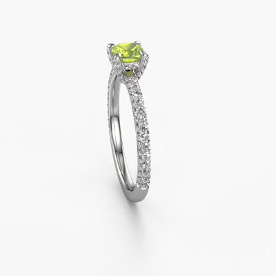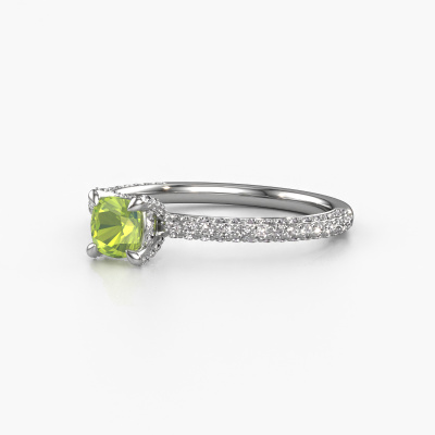 Der oben gezeigte Platin Verlobungsring wird Saskia 2 cus genannt. Es ist ein Pavé Solitär Ring, da er einen zentralen Edelstein und ein Band mit Pavé-Fassung hat. Der moderne Pavé Solitär Verlobungsring ist in der Kombination Platin mit Platin und ist mit einem cussion 4.5 mm Peridot-Mittelstein besetzt und das Band hat eine Pavé-Fassung mit Lab grown Diamant. Jedes Schmuckstück wird nur für Sie persönlich hergestellt, mit Liebe zum Detail und Design. Um den zentralen Stein noch mehr zu betonen, hat das Band eine Pavé-Fassung mit weiteren Peridot. Durch die offenen Krappen kann das Licht aus mehreren Winkeln auf den Peridot treffen und der Peridot-Ring funkelt noch mehr. Das obere Foto zeigt die leidenschaftlich handgefertigten Details des Rings. Die hohe Positionierung der Mittelstein ist ein echter Blickfang. Der perfekte Verlobungsring für das Kronjuwel Ihres Lebens!Haben Sie ein bestimmtes Budget? Sie können uns gerne kontaktieren, damit wir Ihre Optionen besprechen können. Wir bieten unsere Verlobungsringe zum garantiert besten Preis, denn wir fertigen sie auf Bestellung. Solche Preise finden Sie nirgendwo anders!Unsere Designer und Goldschmiede arbeiten jeden Tag zusammen und versuchen, neue Schmuckstücke zu kreieren. Vielleicht haben Sie irgendwo einen schönen, moderne Verlobungsring gefunden, nach dem Ihr einzigartiger Ring gestaltet werden kann. Setzen Sie sich mit uns in Verbindung. Wir machen Ihnen ein Angebot, basierend auf einem fairen Preis/Leistungsverhältnis, das Sie begeistern wird.Um es einfacher zu machen, bieten wir eine kostenlose 30-tägige Rücksendung.