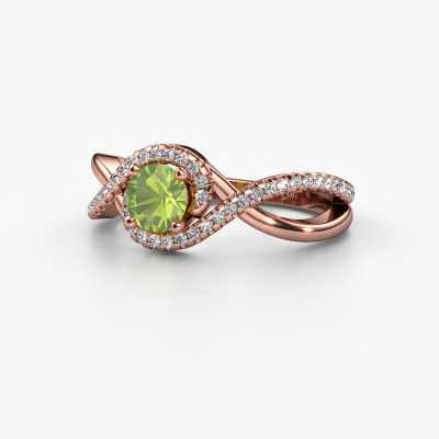 Der oben gezeigte Ring wird Melody genannt. Es ist ein Pavé Solitär Ring, da er einen zentralen Edelstein und ein Band mit Pavé-Fassung hat. Dieser 14 Karat Roségold ring ist mit einem 5 mm rund Peridot-Mittelstein besetzt und das Band hat eine Pavé-Fassung mit Diamanten. Jedes Schmuckstück ist einzigartig in jeder Hinsicht! Einfach nach Ihren Wünschen anzupassen.Dieser klassische Roségold Pavé Solitär Verlobungsring mit Pavé-Fassung hat einen exquisiten, rund Peridot als Mittelstein. Um den zentralen Stein noch mehr zu betonen, hat das Band eine Pavé-Fassung mit weiteren Diamanten. Durch die offenen Krappen kann das Licht aus mehreren Winkeln auf den Peridot treffen und der Peridot-Ring funkelt noch mehr. Das obere Foto zeigt die leidenschaftlich handgefertigten Details des Rings. Die hohe Positionierung der Mittelstein ist ein echter Blickfang. Der perfekte Verlobungsring für das Kronjuwel Ihres Lebens!Da wir unsere eigenen Ringe entwerfen und liefern, können wir Ihnen einen Verlobungsring zu einem Preis anbieten, den Sie nirgendwo anders finden. Ein Ring wird auf Bestellung angefertigt, wodurch kein überschüssiges Material anfällt. So können wir Ihnen ein gutes Angebot zum besten Preis machen. Wir verstehen, dass es sich riskant anfühlt, Ihren Verlobungsring online zu kaufen. Jedoch helfen wir Ihnen gerne beim Designprozess unter Berücksichtigung Ihres Budgets.Haben Sie einen bestimmten Ring im Sinn? Eines, dass Sie irgendwo gesehen haben. Bitte zögern Sie nicht, uns zu sagen, was Sie wollen und wir werden Ihr Design in einen Einzigartigen Verlobungsring verwandeln. Sie können die Entwicklungen Ihres Ringdesigns verfolgen, da wir 3D-Zeichnungen verwenden. Das gibt Ihnen eine realistische Vorschau Ihres Designs. Wir senden Ihnen gerne ein unverbindliches Angebot zu einem fairen Preis/Leistungsverhältnis. Es wird Sie erstaunen.Um es einfacher zu machen, bieten wir eine kostenlose 30-tägige Rücksendung.