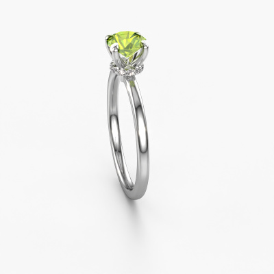 Der oben gezeigte Verlobungsring wird Crystal RND 3 genannt. Wir nennen das einen Solitär-Ring, denn er hat einen einzelnen Edelstein. Es ist ein Platin ring, mit 5.5 mm rund Peridot. Das Besondere an unserem Konfigurator ist dass Sie selbst einem Schmuckstück zusammenstellen können zu einem eigenen persönlichen Schmuckstück. Dieser Solitäre Verlobungsring ist gefertigt in der Edelmetall Kombination Platin mit Platin, aber Sie können also auch wählen aus anderen Farben. Jedes Schmuckstück wird hergestellt mit Leidenschaft und Liebe, von einem unserer Meister-Goldschmiede. Der Solitär-Verlobungsring ist eine Sonderform des Verlobungsring. Seine offenen Krappen ermöglichen, dass Licht aus mehr Winkeln auf den Edelstein trifft. Dieser klassische Verlobungsring ist durch die hohe Positionierung des Edelsteins ein atemberaubender Blickfang. Wir schmücken diesen Solitär-Ring sorgfältig von Hand, damit Sie Ihren Anfrage mit einem einzigartigen Ring würdigen können. Die Liebe Ihres Lebens verdient nur das Beste. Durch die Kombination modernster Technik mit uralter Handwerkskunst können wir alle Verlobungsringe in unserem eigenen Studio anfertigen. Jedes Schmuckstück wird auf Anfrage gefertigt. Das ist vorteilhaft, weil wir Ihnen dadurch einen Preis anbieten können, den Sie nirgendwo anders finden.Verschiedene Arten von neuen Ringen werden täglich von unserem Team angefertigt. Vielleicht haben Sie irgendwo einen Solitär Verlobungsring gefunden. Einen, den Sie Ihrem Liebsten schenken möchten. Bitte zögern Sie nicht, unseren Schmuckdesignern Ihre Gedanken und Ihr Design zu zeigen. Wir würden gerne Ihr Design in einen klassische Verlobungsring verwandeln. Sie können die Entwicklungen Ihres Ringdesigns verfolgen, da wir sehr detaillierte 3D-Zeichnungen verwenden. Darüber hinaus können Sie einen Dummy des Designs bestellen. Ein Dummy ist ein Kunststoffring, der nach Ihrem Ringdesign gestaltet werden kann. Sie können ihn anprobieren und prüfen, ob der Verlobungsring Ihren Vorstellungen entspricht. Wir senden Ihnen gerne ein unverbindliches Angebot zu einem fairen Preis/Leistungsverhältnis. Das Angebot wird Sie angesichts der Qualität des Rings und der Edelsteine verblüffen.Um es einfacher zu machen, bieten wir eine kostenlose 30-tägige Rücksendung.