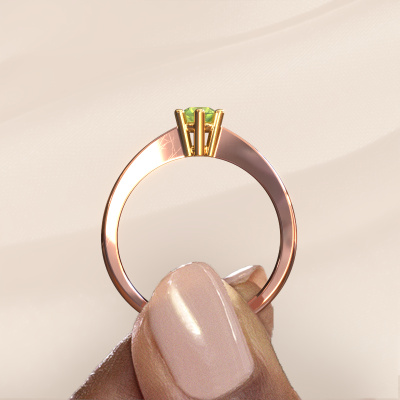 Der oben gezeigte Verlobungsring wird Luna 1 genannt. Wir nennen das einen Solitär-Ring, denn er hat einen einzelnen Edelstein. Es ist ein 14 Karat Roségold ring, mit 3.7 mm rund Peridot. Das Besondere an unserem Konfigurator ist dass Sie selbst einem Schmuckstück zusammenstellen können zu einem eigenen persönlichen Schmuckstück. Dieser Solitäre Verlobungsring ist gefertigt in der Edelmetall Kombination Roségold mit Gold, aber Sie können also auch wählen aus anderen Farben. Jedes Schmuckstück wird hergestellt mit Leidenschaft und Liebe, von einem unserer Meister-Goldschmiede. Der Solitär-Verlobungsring ist eine Sonderform des Verlobungsring. Seine offenen Krappen ermöglichen, dass Licht aus mehr Winkeln auf den Edelstein trifft. Dieser klassische Verlobungsring ist durch die hohe Positionierung des Edelsteins ein atemberaubender Blickfang. Wir schmücken diesen Solitär-Ring sorgfältig von Hand, damit Sie Ihren Anfrage mit einem einzigartigen Ring würdigen können. Die Liebe Ihres Lebens verdient nur das Beste. Nachdem Sie Ihre Bestellung aufgegeben haben, beginnen unsere Goldschmiede mit dem kreativen Prozess der Herstellung Ihres Luna 1 Verlobungsring. Wir haben keine Lager. Das ist vorteilhaft, da diese Kosten nicht an Sie weitergegeben werden. Daher sind wir in der Lage, Schmuck zu außergewöhnlich niedrigen Preisen anzubieten.Unsere Designer und Goldschmiede arbeiten jeden Tag zusammen und versuchen, neue Schmuckstücke zu kreieren. Vielleicht haben Sie irgendwo einen schönen, klassische Verlobungsring gefunden, nach dem Ihr einzigartiger Ring gestaltet werden kann. Setzen Sie sich mit uns in Verbindung. Wir machen Ihnen ein Angebot, basierend auf einem fairen Preis/Leistungsverhältnis, das Sie begeistern wird.Um es einfacher zu machen, bieten wir eine kostenlose 30-tägige Rücksendung.