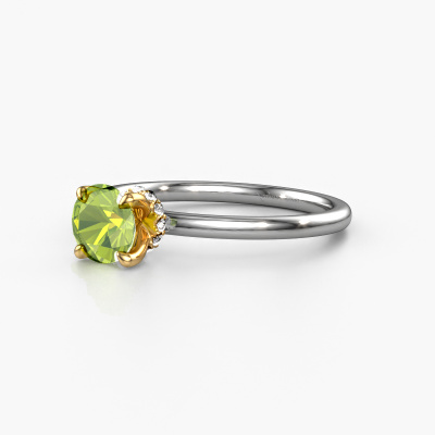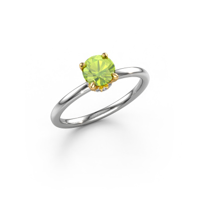 Der oben gezeigte Verlobungsring wird Crystal RND 3 genannt. Wir nennen das einen Solitär-Ring, denn er hat einen einzelnen Edelstein. Es ist ein 14 Karat Weißgold ring, mit 5.5 mm rund Peridot. Das Besondere an unserem Konfigurator ist dass Sie selbst einem Schmuckstück zusammenstellen können zu einem eigenen persönlichen Schmuckstück. Dieser Solitäre Verlobungsring ist gefertigt in der Edelmetall Kombination Weißgold mit Gold, aber Sie können also auch wählen aus anderen Farben. Jedes Schmuckstück wird hergestellt mit Leidenschaft und Liebe, von einem unserer Meister-Goldschmiede. Der Solitär-Verlobungsring ist eine Sonderform des Verlobungsring. Seine offenen Krappen ermöglichen, dass Licht aus mehr Winkeln auf den Edelstein trifft. Dieser klassische Verlobungsring ist durch die hohe Positionierung des Edelsteins ein atemberaubender Blickfang. Wir schmücken diesen Solitär-Ring sorgfältig von Hand, damit Sie Ihren Anfrage mit einem einzigartigen Ring würdigen können. Die Liebe Ihres Lebens verdient nur das Beste. Durch die Kombination modernster Technik mit uralter Handwerkskunst können wir alle Verlobungsringe in unserem eigenen Studio anfertigen. Jedes Schmuckstück wird auf Anfrage gefertigt. Das ist vorteilhaft, weil wir Ihnen dadurch einen Preis anbieten können, den Sie nirgendwo anders finden.Verschiedene Arten von neuen Ringen werden täglich von unserem Team angefertigt. Vielleicht haben Sie irgendwo einen Solitär Verlobungsring gefunden. Einen, den Sie Ihrem Liebsten schenken möchten. Bitte zögern Sie nicht, unseren Schmuckdesignern Ihre Gedanken und Ihr Design zu zeigen. Wir würden gerne Ihr Design in einen klassische Verlobungsring verwandeln. Sie können die Entwicklungen Ihres Ringdesigns verfolgen, da wir sehr detaillierte 3D-Zeichnungen verwenden. Darüber hinaus können Sie einen Dummy des Designs bestellen. Ein Dummy ist ein Kunststoffring, der nach Ihrem Ringdesign gestaltet werden kann. Sie können ihn anprobieren und prüfen, ob der Verlobungsring Ihren Vorstellungen entspricht. Wir senden Ihnen gerne ein unverbindliches Angebot zu einem fairen Preis/Leistungsverhältnis. Das Angebot wird Sie angesichts der Qualität des Rings und der Edelsteine verblüffen.Um es einfacher zu machen, bieten wir eine kostenlose 30-tägige Rücksendung.