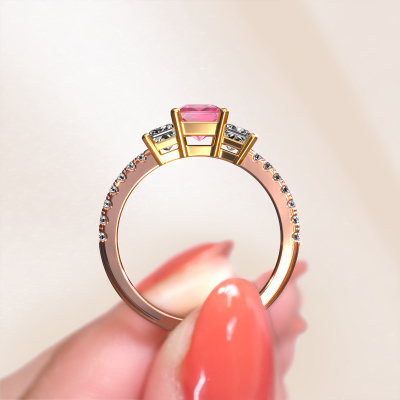 Dieser Verlobungsring aus 14 Karat Roségold mit 5 mm Pink Saphir heißt Dorla. Was macht Ihre Beziehung einzigartig? Was hat sie an sich, was Sie dazu bringt, auf die Knie zu fallen? Die einzigartige Verbindung zwischen Ihnen beiden wird durch einen ebenso einzigartigen Ring unterstrichen. Ein einzigartiger 3-stone Verlobungsring, der nur für sie gemacht wurde. Deshalb passt dieser Ring wie angegossen. Jedes einzelne Detail dieses Micropavé, Roségold Pink Saphir Verlobungsring wird von unserem erfahrenen Goldschmieden in unserem eigenen Studio von Hand ausgesucht, bearbeitet und poliert. Das Endprodukt ist ein exquisiter Ring, einzigartig und bis zur Perfektion gebracht. Danach streben unsere erfahrenen Juweliere. Jedes Schmuckstück ist einzigartig in jeder Hinsicht! Einfach nach Ihren Wünschen anzupassen.Nach Erhalt Ihrer Bestellung beginnen unsere Goldschmiede mit Leidenschaft den kreativen Prozess und fertigen Ihren Verlobungsring in unserem eigenen Studio. Da wir keine großen Lager haben, werden diese Kosten nicht an Sie weitergegeben. Unsere Preisgestaltung ist der Beweis dafür! Wir bieten Schmuck zum niedrigsten Preis, garantiert.Haben Sie einen bestimmten Ring im Sinn? Eines, dass Sie irgendwo gesehen haben. Bitte zögern Sie nicht, uns zu sagen, was Sie wollen und wir werden Ihr Design in einen Einzigartigen Verlobungsring verwandeln. Sie können die Entwicklungen Ihres Ringdesigns verfolgen, da wir 3D-Zeichnungen verwenden. Das gibt Ihnen eine realistische Vorschau Ihres Designs. Wir senden Ihnen gerne ein unverbindliches Angebot zu einem fairen Preis/Leistungsverhältnis. Es wird Sie erstaunen.Um es einfacher zu machen, bieten wir eine kostenlose 30-tägige Rücksendung.