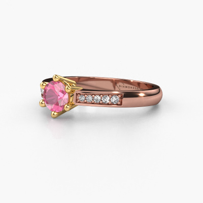 Der oben gezeigte Ring wird Luna 2 genannt. Es ist ein Pavé Solitär Ring, da er einen zentralen Edelstein und ein Band mit Pavé-Fassung hat. Dieser 14 Karat Roségold ring ist mit einem 5 mm rund Pink Saphir-Mittelstein besetzt und das Band hat eine Pavé-Fassung mit Diamanten. Jedes Schmuckstück ist einzigartig in jeder Hinsicht! Einfach nach Ihren Wünschen anzupassen.Dieser klassische Roségold Pavé Solitär Verlobungsring mit Pavé-Fassung hat einen exquisiten, rund Pink Saphir als Mittelstein. Um den zentralen Stein noch mehr zu betonen, hat das Band eine Pavé-Fassung mit weiteren Diamanten. Durch die offenen Krappen kann das Licht aus mehreren Winkeln auf den Pink Saphir treffen und der Pink Saphir-Ring funkelt noch mehr. Das obere Foto zeigt die leidenschaftlich handgefertigten Details des Rings. Die hohe Positionierung der Mittelstein ist ein echter Blickfang. Der perfekte Verlobungsring für das Kronjuwel Ihres Lebens!Da wir unsere eigenen Ringe entwerfen und liefern, können wir Ihnen einen Verlobungsring zu einem Preis anbieten, den Sie nirgendwo anders finden. Ein Ring wird auf Bestellung angefertigt, wodurch kein überschüssiges Material anfällt. So können wir Ihnen ein gutes Angebot zum besten Preis machen. Wir verstehen, dass es sich riskant anfühlt, Ihren Verlobungsring online zu kaufen. Jedoch helfen wir Ihnen gerne beim Designprozess unter Berücksichtigung Ihres Budgets.Unser Team fügt unserer Online-Kollektion täglich neue Designs hinzu. Unsere Designer und Goldschmiede arbeiten zusammen, um das beste Design zu kreieren. Wir bemühen uns, eine vielfältige Kollektion von Schmuckstücken anzubieten. Vielleicht haben Sie ein bestimmtes Design im Sinn. Eines, dass Sie irgendwo gesehen haben. Gerne geben wir Ihnen eine kostenlose Beratung. Wir machen Ihnen ein Angebot, basierend auf einem fairen Preis/Leistungsverhältnis, das Sie verblüffen wird.Um es einfacher zu machen, bieten wir eine kostenlose 30-tägige Rücksendung.