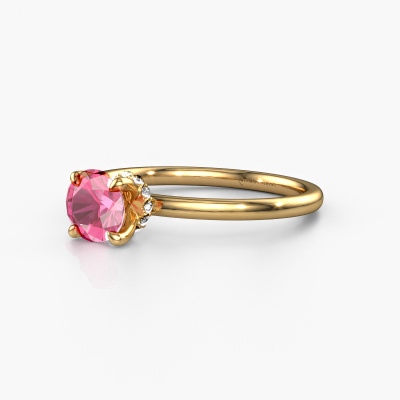 Der oben gezeigte Verlobungsring wird Crystal RND 3 genannt. Wir nennen das einen Solitär-Ring, denn er hat einen einzelnen Edelstein. Es ist ein 14 Karat Gold ring, mit 5.5 mm rund Pink Saphir. Das Besondere an unserem Konfigurator ist dass Sie selbst einem Schmuckstück zusammenstellen können zu einem eigenen persönlichen Schmuckstück. Dieser Solitäre Verlobungsring ist gefertigt in der Edelmetall Kombination Gold mit Gold, aber Sie können also auch wählen aus anderen Farben. Jedes Schmuckstück wird hergestellt mit Leidenschaft und Liebe, von einem unserer Meister-Goldschmiede. Der Solitär-Verlobungsring ist eine Sonderform des Verlobungsring. Seine offenen Krappen ermöglichen, dass Licht aus mehr Winkeln auf den Edelstein trifft. Dieser klassische Verlobungsring ist durch die hohe Positionierung des Edelsteins ein atemberaubender Blickfang. Wir schmücken diesen Solitär-Ring sorgfältig von Hand, damit Sie Ihren Anfrage mit einem einzigartigen Ring würdigen können. Die Liebe Ihres Lebens verdient nur das Beste. Durch die Kombination modernster Technik mit uralter Handwerkskunst können wir alle Verlobungsringe in unserem eigenen Studio anfertigen. Jedes Schmuckstück wird auf Anfrage gefertigt. Das ist vorteilhaft, weil wir Ihnen dadurch einen Preis anbieten können, den Sie nirgendwo anders finden.Verschiedene Arten von neuen Ringen werden täglich von unserem Team angefertigt. Vielleicht haben Sie irgendwo einen Solitär Verlobungsring gefunden. Einen, den Sie Ihrem Liebsten schenken möchten. Bitte zögern Sie nicht, unseren Schmuckdesignern Ihre Gedanken und Ihr Design zu zeigen. Wir würden gerne Ihr Design in einen klassische Verlobungsring verwandeln. Sie können die Entwicklungen Ihres Ringdesigns verfolgen, da wir sehr detaillierte 3D-Zeichnungen verwenden. Darüber hinaus können Sie einen Dummy des Designs bestellen. Ein Dummy ist ein Kunststoffring, der nach Ihrem Ringdesign gestaltet werden kann. Sie können ihn anprobieren und prüfen, ob der Verlobungsring Ihren Vorstellungen entspricht. Wir senden Ihnen gerne ein unverbindliches Angebot zu einem fairen Preis/Leistungsverhältnis. Das Angebot wird Sie angesichts der Qualität des Rings und der Edelsteine verblüffen.Um es einfacher zu machen, bieten wir eine kostenlose 30-tägige Rücksendung.