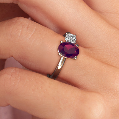 Dieser Verlobungsring aus Platin heißt Toi et Moi OVL-RND. Suchen Sie nach einem einzigartigen Platin Verlobungsring mit einem trendigen Aussehen? Dann ist dieser Ring mit Rhodolit das Richtige für Sie. Einfach nach Ihren Wünschen anpassen. Dieser schicke Verlobungsring ist mit exquisiten Rhodolit besetzt. Er wurde sorgfältig ausgewählt, weil Ihr zierliche Verlobungsring nur mit dem schönsten Edelstein gekrönt werden darf. Unser erfahrener Juwelier kreiert Ihren Ring in unserem eigenen Studio, wo der Rhodolit mit großer Sorgfalt eingefasst wird. Der Ring wird dann bearbeitet und poliert, um ihm einen zusätzlichen Glanz zu verleihen. Der perfekte Ring für Ihre bessere Hälfte!Haben Sie ein bestimmtes Budget? Sie können uns gerne kontaktieren, damit wir Ihre Optionen besprechen können. Wir bieten unsere Verlobungsringe zum garantiert besten Preis, denn wir fertigen sie auf Bestellung. Solche Preise finden Sie nirgendwo anders!Haben Sie irgendwo einen bestimmten Verlobungsring gefunden, den Sie Ihrem Liebsten schenken möchten? Sie können uns gerne sagen, was Sie wollen und wir werden Ihr Design in einen Einzigartigen schicke Verlobungsring verwandeln. Sie können die Entwicklungen Ihres Ringdesigns verfolgen, da wir 3D-Zeichnungen verwenden. Das gibt Ihnen eine realistische Vorschau, wie Ihr Design aussehen wird. Sie können auch einen Dummy vorbestellen. Ein Dummy ist ein Kunststoffring, der nach Ihrem Ringdesign gestaltet werden kann. Sie können ihn anprobieren und prüfen, ob seine Breite und Größe für Sie geeignet sind. Wir senden Ihnen gerne ein unverbindliches Angebot zu einem fairen Preis/Leistungsverhältnis. Sie werden in Anbetracht der Qualität des Rings und der Edelsteine überrascht sein.Um es einfacher zu machen, bieten wir eine kostenlose 30-tägige Rücksendung.