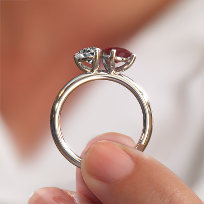 Dieser Verlobungsring aus Platin heißt Toi et Moi PER-PER. Suchen Sie nach einem einzigartigen Platin Verlobungsring mit einem trendigen Aussehen? Dann ist dieser Ring mit Rubin das Richtige für Sie. Einfach nach Ihren Wünschen anpassen. Dieser modische Verlobungsring ist mit exquisiten Rubin besetzt. Er wurde sorgfältig ausgewählt, weil Ihr modische Verlobungsring nur mit dem schönsten Edelstein gekrönt werden darf. Unser erfahrener Juwelier kreiert Ihren Ring in unserem eigenen Studio, wo der Rubin mit großer Sorgfalt eingefasst wird. Der Ring wird dann bearbeitet und poliert, um ihm einen zusätzlichen Glanz zu verleihen. Der perfekte Ring für Ihre bessere Hälfte!Nach Erhalt Ihrer Bestellung beginnen unsere Goldschmiede mit Leidenschaft den kreativen Prozess und fertigen Ihren Verlobungsring in unserem eigenen Studio. Da wir keine großen Lager haben, werden diese Kosten nicht an Sie weitergegeben. Unsere Preisgestaltung ist der Beweis dafür! Wir bieten Schmuck zum niedrigsten Preis, garantiert.Unsere Designer und Goldschmiede arbeiten jeden Tag zusammen und versuchen, neue Schmuckstücke zu kreieren. Vielleicht haben Sie irgendwo einen schönen, modische Verlobungsring gefunden, nach dem Ihr einzigartiger Ring gestaltet werden kann. Setzen Sie sich mit uns in Verbindung. Wir machen Ihnen ein Angebot, basierend auf einem fairen Preis/Leistungsverhältnis, das Sie begeistern wird.Um es einfacher zu machen, bieten wir eine kostenlose 30-tägige Rücksendung.