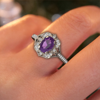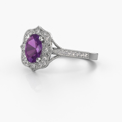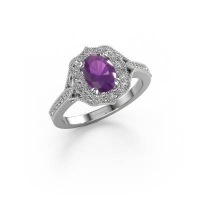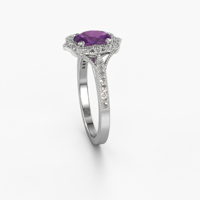 Dieser Verlobungsring aus Platin heißt Loni. Dieser filigrane Platin Verlobungsring mit 7,5x5,5 mm Amethyst ist ein wahres Kunstwerk! Ein wunderschön geschmücktes Design aus komplizierten Drähten. Mit Hingabe, Geduld und äußerster Präzision werden unsere erfahrenen Juweliere einen Ring nur für Sie entwerfen. Die Verzierungen mit kleinen Drähten werden von Hand in Perfektion gefertigt. Das ist ein langwieriger Prozess, der Schweißen, Werkzeug und Polieren umfasst, bis der erfahrene Juwelier mit dem Ergebnis zufrieden ist: Ein perfekter, auffälliger Ring, der ihn mit Freude zum Strahlen bringt. Deshalb ist der Vintage, filigrane Verlobungsring ein außergewöhnliches Geschenk, um die Liebe Ihres Lebens zu verwöhnen. Ein handgemachter, einzigartiger und personalisierter Ring, den man jemandem in diesem besonderen Moment geben kann, wenn man die eine Frage stellt. Ist das nicht wunderbar? Jedes Schmuckstück wird hergestellt mit Leidenschaft und Liebe, von einem unserer Meister-Goldschmiede.Da wir unsere eigenen Ringe entwerfen und liefern, können wir Ihnen einen Verlobungsring zu einem Preis anbieten, den Sie nirgendwo anders finden. Ein Ring wird auf Bestellung angefertigt, wodurch kein überschüssiges Material anfällt. So können wir Ihnen ein gutes Angebot zum besten Preis machen. Wir verstehen, dass es sich riskant anfühlt, Ihren Verlobungsring online zu kaufen. Jedoch helfen wir Ihnen gerne beim Designprozess unter Berücksichtigung Ihres Budgets.Unser Team fügt unserer Online-Kollektion täglich neue Designs hinzu. Unsere Designer und Goldschmiede arbeiten zusammen, um das beste Design zu kreieren. Wir bemühen uns, eine vielfältige Kollektion von Schmuckstücken anzubieten. Vielleicht haben Sie ein bestimmtes Design im Sinn. Eines, dass Sie irgendwo gesehen haben. Gerne geben wir Ihnen eine kostenlose Beratung. Wir machen Ihnen ein Angebot, basierend auf einem fairen Preis/Leistungsverhältnis, das Sie verblüffen wird.Um es einfacher zu machen, bieten wir eine kostenlose 30-tägige Rücksendung.