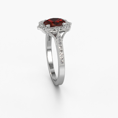 Dieser Verlobungsring aus Platin heißt Loni. Dieser filigrane Platin Verlobungsring mit 7,5x5,5 mm Granat ist ein wahres Kunstwerk! Ein wunderschön geschmücktes Design aus komplizierten Drähten. Mit Hingabe, Geduld und äußerster Präzision werden unsere erfahrenen Juweliere einen Ring nur für Sie entwerfen. Die Verzierungen mit kleinen Drähten werden von Hand in Perfektion gefertigt. Das ist ein langwieriger Prozess, der Schweißen, Werkzeug und Polieren umfasst, bis der erfahrene Juwelier mit dem Ergebnis zufrieden ist: Ein perfekter, auffälliger Ring, der ihn mit Freude zum Strahlen bringt. Deshalb ist der Vintage, filigrane Verlobungsring ein außergewöhnliches Geschenk, um die Liebe Ihres Lebens zu verwöhnen. Ein handgemachter, einzigartiger und personalisierter Ring, den man jemandem in diesem besonderen Moment geben kann, wenn man die eine Frage stellt. Ist das nicht wunderbar? Jedes Schmuckstück wird hergestellt mit Leidenschaft und Liebe, von einem unserer Meister-Goldschmiede.Da wir unsere eigenen Ringe entwerfen und liefern, können wir Ihnen einen Verlobungsring zu einem Preis anbieten, den Sie nirgendwo anders finden. Ein Ring wird auf Bestellung angefertigt, wodurch kein überschüssiges Material anfällt. So können wir Ihnen ein gutes Angebot zum besten Preis machen. Wir verstehen, dass es sich riskant anfühlt, Ihren Verlobungsring online zu kaufen. Jedoch helfen wir Ihnen gerne beim Designprozess unter Berücksichtigung Ihres Budgets.Unser Team fügt unserer Online-Kollektion täglich neue Designs hinzu. Unsere Designer und Goldschmiede arbeiten zusammen, um das beste Design zu kreieren. Wir bemühen uns, eine vielfältige Kollektion von Schmuckstücken anzubieten. Vielleicht haben Sie ein bestimmtes Design im Sinn. Eines, dass Sie irgendwo gesehen haben. Gerne geben wir Ihnen eine kostenlose Beratung. Wir machen Ihnen ein Angebot, basierend auf einem fairen Preis/Leistungsverhältnis, das Sie verblüffen wird.Um es einfacher zu machen, bieten wir eine kostenlose 30-tägige Rücksendung.