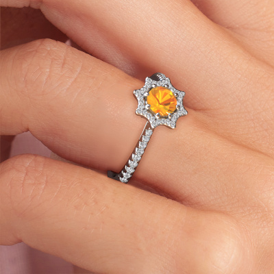 Dieser Verlobungsring aus Platin heißt Zena und hat einen Citrin Edelstein. Ein außergewöhnlicher, Platin Vintage Ring. Einer, der die Liebe Ihres Lebens mit Sicherheit wie ein Citrin erstrahlen lässt! Das hoffen wir zu erreichen. Dieser