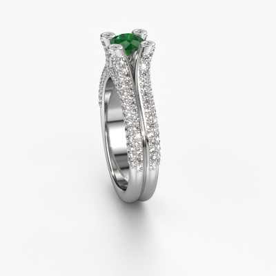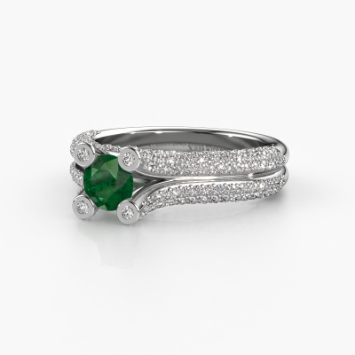 Dieser Verlobungsring aus Platin mit 5 mm Smaragd heißt Stefanie 2. Liebt deine Freundin exklusiven Schmuck? Oder möchten Sie ihr zeigen, dass sie den besten Schmuck verdient? Dieser Platin Ring ist pure Handwerkskunst - Liebe und Leidenschaft kombiniert mit den neuesten Techniken, die in perfekter Harmonie zusammentreffen. Es erfordert ein scharfes Auge, Geduld und eine geschickte Hand, um diesen Ring in Perfektion zu formen. Genau der richtige Job für unsere erfahrenen Juweliere! Die Smaragd-Fassung verleiht diesem Platin gespaltene Bänder Ring eine extra glänzende Erscheinung. Passen Sie den Stil des Rings nach Ihren Wünschen und mit einer großen Auswahl an Edelmetallen und Edelsteinen an, die Sie selbst auswählen können. So kreieren Sie einen einzigartigen Ring für die exklusivste Frau Ihres Lebens! Jedes Schmuckstück wird von unseren Meister-Goldschmieden in unserem eigenen Studio für Sie gefertigt.Nach Erhalt Ihrer Bestellung beginnen unsere Goldschmiede mit Leidenschaft den kreativen Prozess und fertigen Ihren Verlobungsring in unserem eigenen Studio. Da wir keine großen Lager haben, werden diese Kosten nicht an Sie weitergegeben. Unsere Preisgestaltung ist der Beweis dafür! Wir bieten Schmuck zum niedrigsten Preis, garantiert.Verschiedene Arten von neuen Ringen werden täglich von unserem Team angefertigt. Vielleicht haben Sie irgendwo einen Pavé Solitär Verlobungsring gefunden. Einen, den Sie Ihrem Liebsten schenken möchten. Bitte zögern Sie nicht, unseren Schmuckdesignern Ihre Gedanken und Ihr Design zu zeigen. Wir würden gerne Ihr Design in einen einzigartige Verlobungsring verwandeln. Sie können die Entwicklungen Ihres Ringdesigns verfolgen, da wir sehr detaillierte 3D-Zeichnungen verwenden. Darüber hinaus können Sie einen Dummy des Designs bestellen. Ein Dummy ist ein Kunststoffring, der nach Ihrem Ringdesign gestaltet werden kann. Sie können ihn anprobieren und prüfen, ob der Verlobungsring Ihren Vorstellungen entspricht. Wir senden Ihnen gerne ein unverbindliches Angebot zu einem fairen Preis/Leistungsverhältnis. Das Angebot wird Sie angesichts der Qualität des Rings und der Edelsteine verblüffen.Um es einfacher zu machen, bieten wir eine kostenlose 30-tägige Rücksendung.