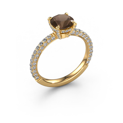 Der oben gezeigte Gold Verlobungsring wird Saskia rnd 2 genannt. Es ist ein Pavé Solitär Ring, da er einen zentralen Edelstein und ein Band mit Pavé-Fassung hat. Der exklusive Pavé Solitär Verlobungsring ist in der Kombination 14 Karat Gold mit Gold und ist mit einem rund 7 mm Rauchquarz-Mittelstein besetzt und das Band hat eine Pavé-Fassung mit Lab grown Diamant. Jedes Schmuckstück wird hergestellt von einem Team leidenschaftlicher Goldschmiede und Schmuckdesigner. Das wird Ihr Kronjuwel unbedingt zu einem Blickfang machen. Um den zentralen Stein noch mehr zu betonen, hat das Band eine Pavé-Fassung mit weiteren Rauchquarz. Durch die offenen Krappen kann das Licht aus mehreren Winkeln auf den Rauchquarz treffen und der Rauchquarz-Ring funkelt noch mehr. Das obere Foto zeigt die leidenschaftlich handgefertigten Details des Rings. Die hohe Positionierung der Mittelstein ist ein echter Blickfang. Der perfekte Verlobungsring für das Kronjuwel Ihres Lebens!Nach Erhalt Ihrer Bestellung beginnen unsere Goldschmiede mit Leidenschaft den kreativen Prozess und fertigen Ihren Verlobungsring in unserem eigenen Studio. Da wir keine großen Lager haben, werden diese Kosten nicht an Sie weitergegeben. Unsere Preisgestaltung ist der Beweis dafür! Wir bieten Schmuck zum niedrigsten Preis, garantiert.Unser Team fügt unserer Online-Kollektion täglich neue Designs hinzu. Unsere Designer und Goldschmiede arbeiten zusammen, um das beste Design zu kreieren. Wir bemühen uns, eine vielfältige Kollektion von Schmuckstücken anzubieten. Vielleicht haben Sie ein bestimmtes Design im Sinn. Eines, dass Sie irgendwo gesehen haben. Gerne geben wir Ihnen eine kostenlose Beratung. Wir machen Ihnen ein Angebot, basierend auf einem fairen Preis/Leistungsverhältnis, das Sie verblüffen wird.Um es einfacher zu machen, bieten wir eine kostenlose 30-tägige Rücksendung.