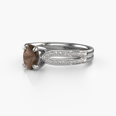 Der oben gezeigte Platin Verlobungsring wird Antonia ovl 2 genannt. Es ist ein Pavé Solitär Ring, da er einen zentralen Edelstein und ein Band mit Pavé-Fassung hat. Der moderne Pavé Solitär Verlobungsring ist in der Kombination Platin mit Platin und ist mit einem oval 7x5 mm Rauchquarz-Mittelstein besetzt und das Band hat eine Pavé-Fassung mit Diamanten. Jedes Schmuckstück ist einzigartig in jeder Hinsicht! Einfach nach Ihren Wünschen anzupassen. Um den zentralen Stein noch mehr zu betonen, hat das Band eine Pavé-Fassung mit weiteren Rauchquarz. Durch die offenen Krappen kann das Licht aus mehreren Winkeln auf den Rauchquarz treffen und der Rauchquarz-Ring funkelt noch mehr. Das obere Foto zeigt die leidenschaftlich handgefertigten Details des Rings. Die hohe Positionierung der Mittelstein ist ein echter Blickfang. Der perfekte Verlobungsring für das Kronjuwel Ihres Lebens!Durch die Kombination modernster Technik mit uralter Handwerkskunst können wir alle Verlobungsringe in unserem eigenen Studio anfertigen. Jedes Schmuckstück wird auf Anfrage gefertigt. Das ist vorteilhaft, weil wir Ihnen dadurch einen Preis anbieten können, den Sie nirgendwo anders finden.Unser Team fügt unserer Online-Kollektion täglich neue Designs hinzu. Unsere Designer und Goldschmiede arbeiten zusammen, um das beste Design zu kreieren. Wir bemühen uns, eine vielfältige Kollektion von Schmuckstücken anzubieten. Vielleicht haben Sie ein bestimmtes Design im Sinn. Eines, dass Sie irgendwo gesehen haben. Gerne geben wir Ihnen eine kostenlose Beratung. Wir machen Ihnen ein Angebot, basierend auf einem fairen Preis/Leistungsverhältnis, das Sie verblüffen wird.Um es einfacher zu machen, bieten wir eine kostenlose 30-tägige Rücksendung.