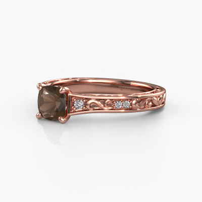 Der oben gezeigte Ring wird Mallory cus genannt. Es ist ein Pavé Solitär Ring, da er einen zentralen Edelstein und ein Band mit Pavé-Fassung hat. Dieser 14 Karat Roségold ring ist mit einem 5.5 mm cussion Rauchquarz-Mittelstein besetzt und das Band hat eine Pavé-Fassung mit Diamanten. Jedes Schmuckstück wird von unseren Meister-Goldschmieden in unserem eigenen Studio für Sie gefertigt.Dieser Keltische Roségold Pavé Solitär Verlobungsring mit Pavé-Fassung hat einen exquisiten, cussion Rauchquarz als Mittelstein. Um den zentralen Stein noch mehr zu betonen, hat das Band eine Pavé-Fassung mit weiteren Diamanten. Durch die offenen Krappen kann das Licht aus mehreren Winkeln auf den Rauchquarz treffen und der Rauchquarz-Ring funkelt noch mehr. Das obere Foto zeigt die leidenschaftlich handgefertigten Details des Rings. Die hohe Positionierung der Mittelstein ist ein echter Blickfang. Der perfekte Verlobungsring für das Kronjuwel Ihres Lebens!Mit unserer modernen Technik können wir Schmuckstücke von höchster Qualität mit größter Sorgfalt für Sie entwerfen und anpassen. Unsere Verlobungsringe sind immer um 30 Prozent günstiger als bei anderen Juwelieren. Wir fertigen Verlobungsringe auf Bestellung, also müssen wir keine großen Lager unterhalten. Wenn Sie ein bestimmtes Budget haben, beraten wir Sie gerne entsprechend.Verschiedene Arten von neuen Ringen werden täglich von unserem Team angefertigt. Vielleicht haben Sie irgendwo einen Pavé Solitär Verlobungsring gefunden. Einen, den Sie Ihrem Liebsten schenken möchten. Bitte zögern Sie nicht, unseren Schmuckdesignern Ihre Gedanken und Ihr Design zu zeigen. Wir würden gerne Ihr Design in einen Keltische Verlobungsring verwandeln. Sie können die Entwicklungen Ihres Ringdesigns verfolgen, da wir sehr detaillierte 3D-Zeichnungen verwenden. Darüber hinaus können Sie einen Dummy des Designs bestellen. Ein Dummy ist ein Kunststoffring, der nach Ihrem Ringdesign gestaltet werden kann. Sie können ihn anprobieren und prüfen, ob der Verlobungsring Ihren Vorstellungen entspricht. Wir senden Ihnen gerne ein unverbindliches Angebot zu einem fairen Preis/Leistungsverhältnis. Das Angebot wird Sie angesichts der Qualität des Rings und der Edelsteine verblüffen.Um es einfacher zu machen, bieten wir eine kostenlose 30-tägige Rücksendung.