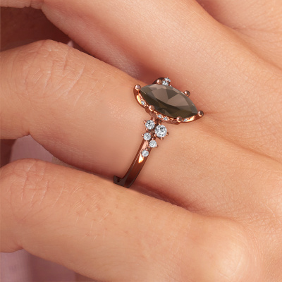 Dieser Verlobungsring aus 585 Roségold heißt Emma MRQ. Wie würden Sie den Stil der Liebe Ihres Lebens beschreiben? Hat sie einen einzigartigen Sinn für Stil? Diese umwerfende, besondere Roségold Verlobungsring mit 10x5 mm Rauchquarz kann nach