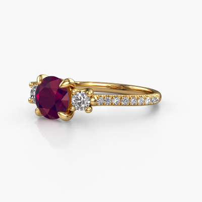 Dieser Verlobungsring aus 14 Karat Gold mit 6.8 mm Rhodolit heißt Jesica. Was macht Ihre Beziehung einzigartig? Was hat sie an sich, was Sie dazu bringt, auf die Knie zu fallen? Die einzigartige Verbindung zwischen Ihnen beiden wird durch einen ebenso einzigartigen Ring unterstrichen. Ein einzigartiger 3-stone Verlobungsring, der nur für sie gemacht wurde. Deshalb passt dieser Ring wie angegossen. Jedes einzelne Detail dieses graziöse, Gold Rhodolit Verlobungsring wird von unserem erfahrenen Goldschmieden in unserem eigenen Studio von Hand ausgesucht, bearbeitet und poliert. Das Endprodukt ist ein exquisiter Ring, einzigartig und bis zur Perfektion gebracht. Danach streben unsere erfahrenen Juweliere. Jedes Schmuckstück wird nur für Sie persönlich hergestellt, mit Liebe zum Detail und Design.Nach Erhalt Ihrer Bestellung beginnen unsere Goldschmiede mit Leidenschaft den kreativen Prozess und fertigen Ihren Verlobungsring in unserem eigenen Studio. Da wir keine großen Lager haben, werden diese Kosten nicht an Sie weitergegeben. Unsere Preisgestaltung ist der Beweis dafür! Wir bieten Schmuck zum niedrigsten Preis, garantiert.Verschiedene Arten von neuen Ringen werden täglich von unserem Team angefertigt. Vielleicht haben Sie irgendwo einen 3-stone Verlobungsring gefunden. Einen, den Sie Ihrem Liebsten schenken möchten. Bitte zögern Sie nicht, unseren Schmuckdesignern Ihre Gedanken und Ihr Design zu zeigen. Wir würden gerne Ihr Design in einen klassische Verlobungsring verwandeln. Sie können die Entwicklungen Ihres Ringdesigns verfolgen, da wir sehr detaillierte 3D-Zeichnungen verwenden. Darüber hinaus können Sie einen Dummy des Designs bestellen. Ein Dummy ist ein Kunststoffring, der nach Ihrem Ringdesign gestaltet werden kann. Sie können ihn anprobieren und prüfen, ob der Verlobungsring Ihren Vorstellungen entspricht. Wir senden Ihnen gerne ein unverbindliches Angebot zu einem fairen Preis/Leistungsverhältnis. Das Angebot wird Sie angesichts der Qualität des Rings und der Edelsteine verblüffen.Um es einfacher zu machen, bieten wir eine kostenlose 30-tägige Rücksendung.