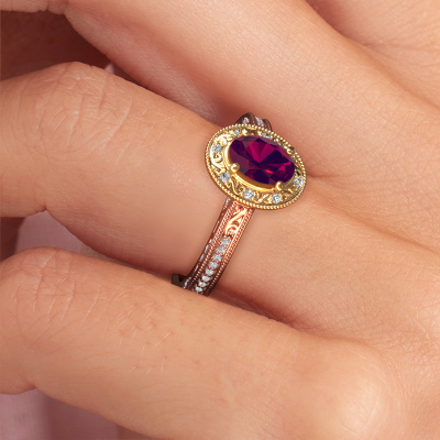 Dieser Verlobungsring aus 14 Karat Roségold mit 7x5 mm Rhodolit heißt Alice OVL. Was macht Ihre Beziehung einzigartig? Was hat sie an sich, was Sie dazu bringt, auf die Knie zu fallen? Die einzigartige Verbindung zwischen Ihnen beiden wird durch einen ebenso einzigartigen Ring unterstrichen. Ein einzigartiger Halo Verlobungsring, der nur für sie gemacht wurde. Deshalb passt dieser Ring wie angegossen. Jedes einzelne Detail dieses Filigrane, Roségold Rhodolit Verlobungsring wird von unserem erfahrenen Goldschmieden in unserem eigenen Studio von Hand ausgesucht, bearbeitet und poliert. Das Endprodukt ist ein exquisiter Ring, einzigartig und bis zur Perfektion gebracht. Danach streben unsere erfahrenen Juweliere. Jedes Schmuckstück wird hergestellt mit Leidenschaft und Liebe, von einem unserer Meister-Goldschmiede.Mit unserer modernen Technik können wir Schmuckstücke von höchster Qualität mit größter Sorgfalt für Sie entwerfen und anpassen. Unsere Verlobungsringe sind immer um 30 Prozent günstiger als bei anderen Juwelieren. Wir fertigen Verlobungsringe auf Bestellung, also müssen wir keine großen Lager unterhalten. Wenn Sie ein bestimmtes Budget haben, beraten wir Sie gerne entsprechend.Unser Team fügt unserer Online-Kollektion täglich neue Designs hinzu. Unsere Designer und Goldschmiede arbeiten zusammen, um das beste Design zu kreieren. Wir bemühen uns, eine vielfältige Kollektion von Schmuckstücken anzubieten. Vielleicht haben Sie ein bestimmtes Design im Sinn. Eines, dass Sie irgendwo gesehen haben. Gerne geben wir Ihnen eine kostenlose Beratung. Wir machen Ihnen ein Angebot, basierend auf einem fairen Preis/Leistungsverhältnis, das Sie verblüffen wird.Um es einfacher zu machen, bieten wir eine kostenlose 30-tägige Rücksendung.