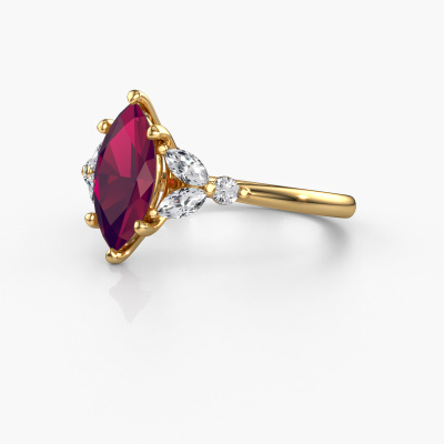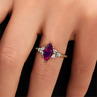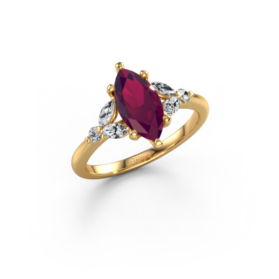 Der oben gezeigte Ring wird Megan MRQ genannt. Es ist ein Pavé Solitär Ring, da er einen zentralen Edelstein und ein Band mit Pavé-Fassung hat. Dieser 14 Karat Gold ring ist mit einem 11x5.5 mm marquise Rhodolit-Mittelstein besetzt und das Band hat eine Pavé-Fassung mit Lab grown Diamant. Jedes Schmuckstück wird hergestellt mit Leidenschaft und Liebe, von einem unserer Meister-Goldschmiede.Dieser Fantasie Gold Pavé Solitär Verlobungsring mit Pavé-Fassung hat einen exquisiten, marquise Rhodolit als Mittelstein. Um den zentralen Stein noch mehr zu betonen, hat das Band eine Pavé-Fassung mit weiteren Lab grown Diamant. Durch die offenen Krappen kann das Licht aus mehreren Winkeln auf den Rhodolit treffen und der Rhodolit-Ring funkelt noch mehr. Das obere Foto zeigt die leidenschaftlich handgefertigten Details des Rings. Die hohe Positionierung der Mittelstein ist ein echter Blickfang. Der perfekte Verlobungsring für das Kronjuwel Ihres Lebens![bestp1v_long]Haben Sie irgendwo einen bestimmten Verlobungsring gefunden, den Sie Ihrem Liebsten schenken möchten? Sie können uns gerne sagen, was Sie wollen und wir werden Ihr Design in einen Einzigartigen Fantasie Verlobungsring verwandeln. Sie können die Entwicklungen Ihres Ringdesigns verfolgen, da wir 3D-Zeichnungen verwenden. Das gibt Ihnen eine realistische Vorschau, wie Ihr Design aussehen wird. Sie können auch einen Dummy vorbestellen. Ein Dummy ist ein Kunststoffring, der nach Ihrem Ringdesign gestaltet werden kann. Sie können ihn anprobieren und prüfen, ob seine Breite und Größe für Sie geeignet sind. Wir senden Ihnen gerne ein unverbindliches Angebot zu einem fairen Preis/Leistungsverhältnis. Sie werden in Anbetracht der Qualität des Rings und der Edelsteine überrascht sein.Um es einfacher zu machen, bieten wir eine kostenlose 30-tägige Rücksendung.